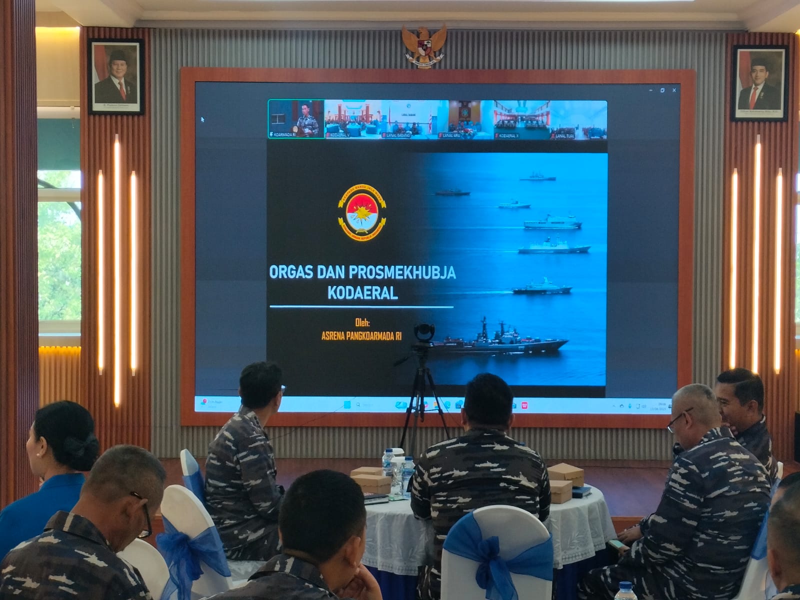 Sementara itu Wadan Kodaeral V Kolonel Laut (P) M. Bimo Sutopo mengikuti Rapat Dinamisasi Prosmekhubja Valor Koarmada RI secara virtual di Lounge Jayastu Mako Kodaeral V.