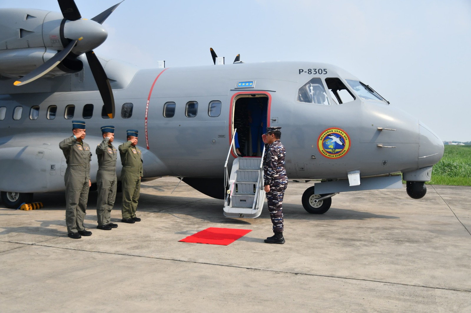 Kunjungan Kerja kali ini didukung dengan menggunakan Pesud CN 235-220 MPA nomor lambung P-8305 dengan Captain Pilot, Kapten Laut (P) Aditya.