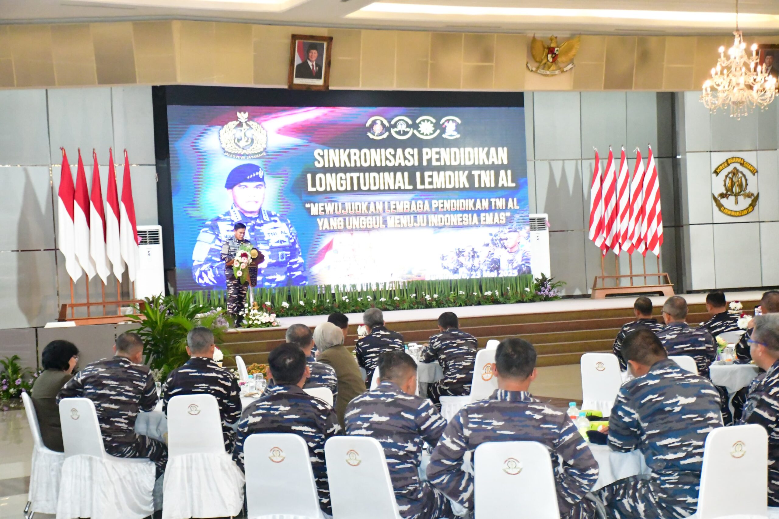 PI – Surabaya, Komandan Pusat Penerbangan TNl Angkatan Laut Laksma TNl Bayu Alisyahbana menghadiri Acara Sinkronisasi Lembaga Pendidikan TNl AL tahun 2025 yang dibuka Kepala Staf TNl Angkatan Laut (KASAL), Laksamana TNl Dr. Muhammad Ali di Gedung Mas Pardi, Akademi Angkatan Laut, Bumimoro, Surabaya, Jumat (23/5/2025).