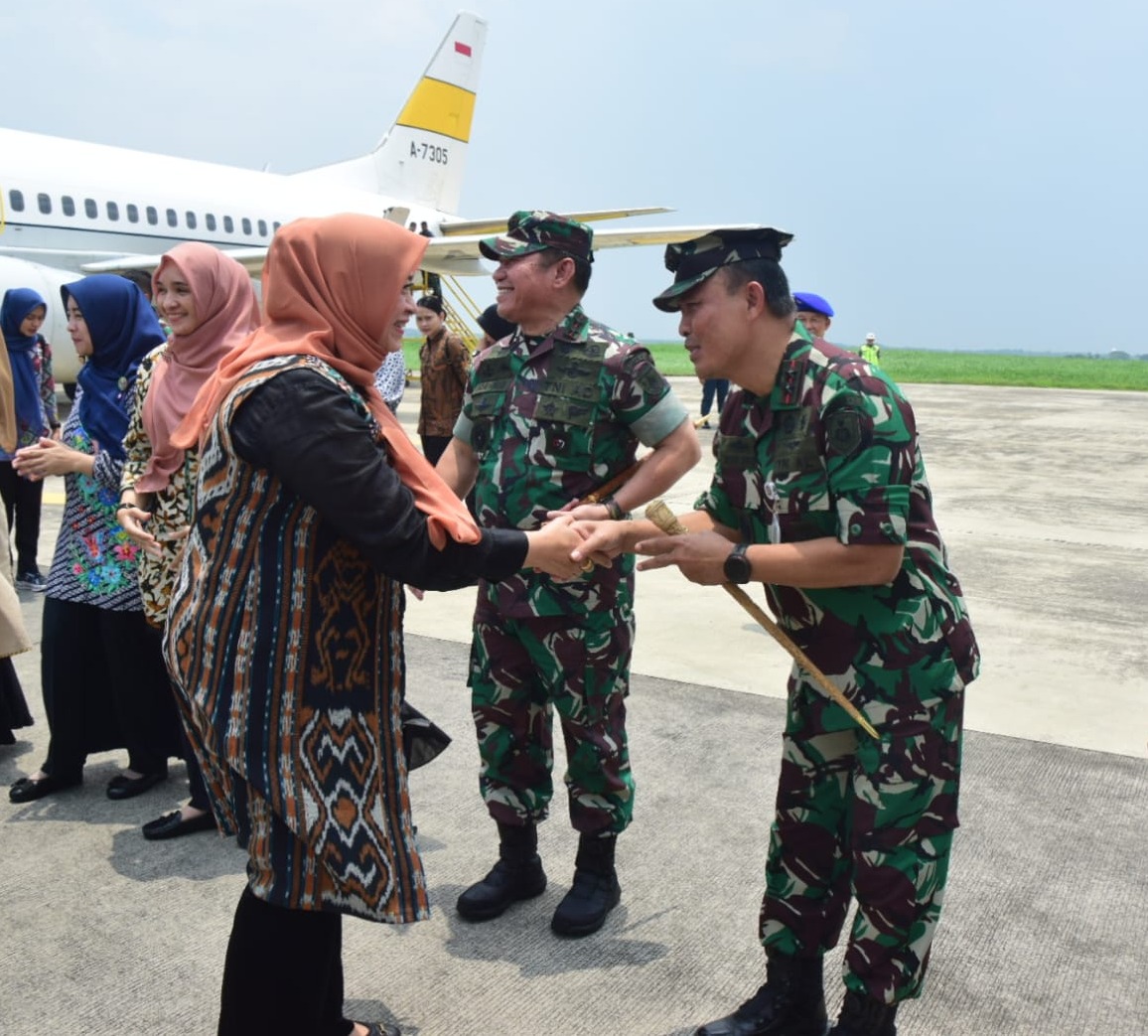 Kedatangan Ketua Umum IKKT Pragati Wira Anggini (istri Panglima TNl Jenderal TNl Agus Subiyanto) beserta rombongan dengan menggunakan Pesawat TNI – AU B-737 / A-7305 yang diawaki Pilot Mayor Pnb Rezha ini, dalam rangka Kunjungan Kerja di Wilayah Prov. Jawa Timur.