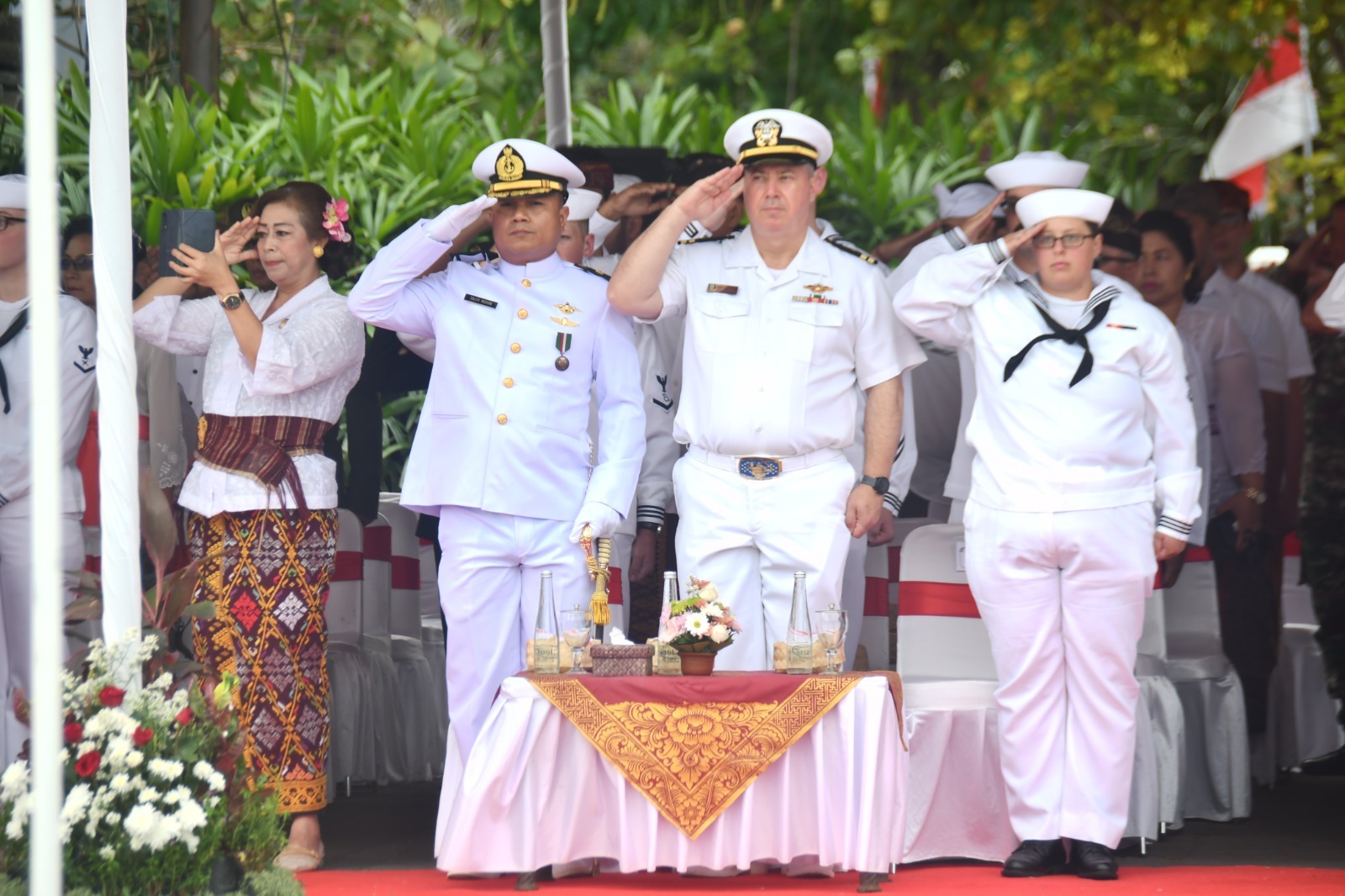 Turut hadir pula mengikuti upacara antara lain Pasintel Lanal Denpasar Mayor Laut (KH) Moh. Saleh Cahyadi Mohan, S. Sos. I., M.H., Paurhartib Denpom Lanal Denpasar Lettu Laut (PM) Agus Efendi, 15 prajurit USS Howard (DDG-83) serta Prajurit Lanal Denpasar. Di akhir kegiatan upacara Wakil Gubernur Bali mengajak seluruh Kru Kapal Perang USS Howard (DDG-83) dan Prajurit Lanal Denpasar untuk foto bersama.