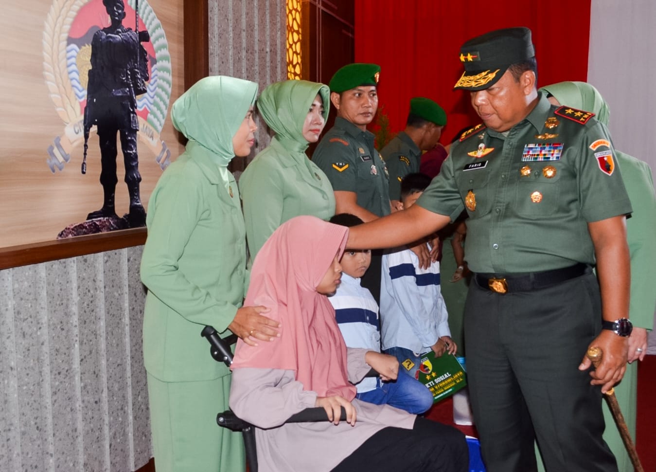 Dalam kunjunganya, Pangdam V Brawijaya Mayjrn TNI Farid Makruf, M.A., juga memberikan bantuan sosial kepada para Warakawuri jajaran Kodim 0813 Bojonegoro dan anak berkebutuhan khusus.