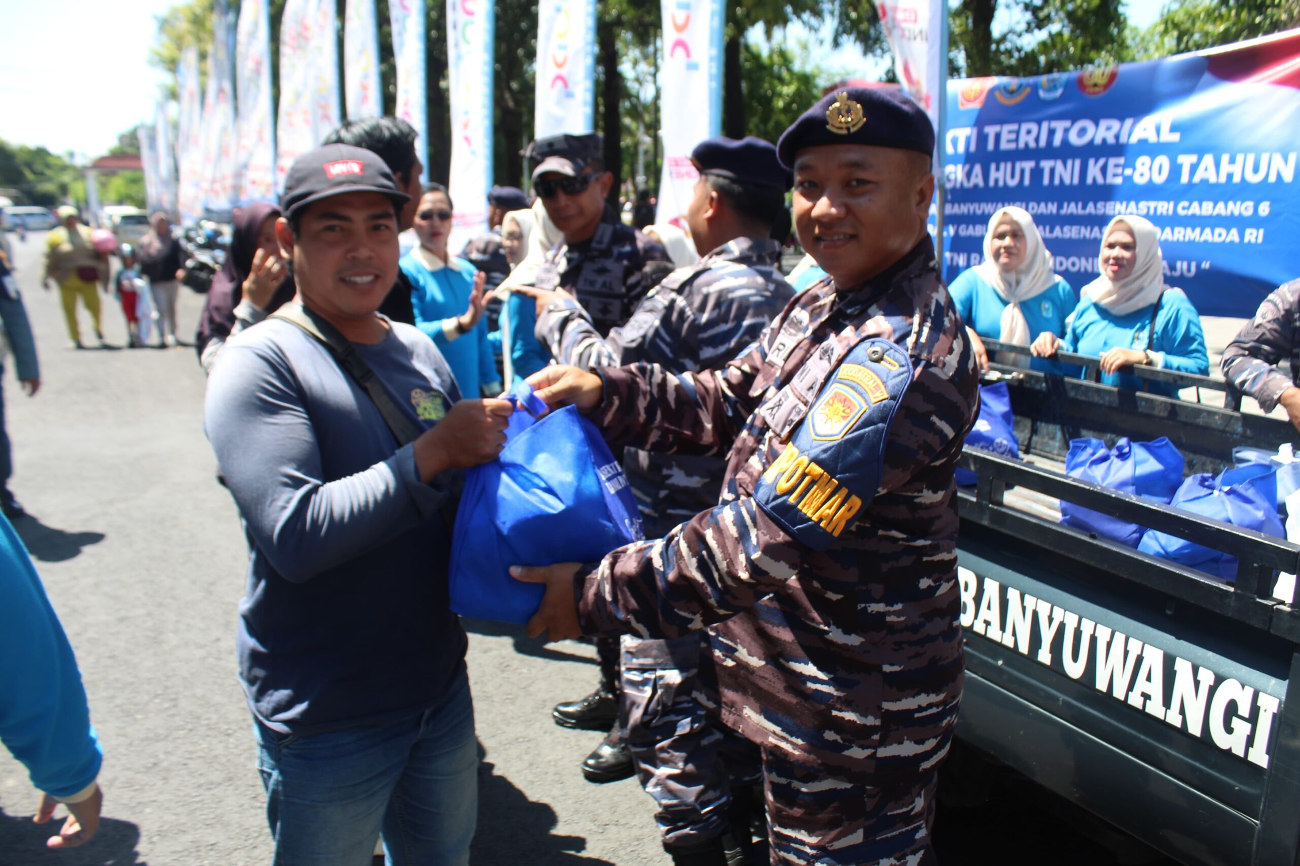 Bakti Teritorial ini bertujuan untuk meringankan beban masyarakat yang membutuhkan sekaligus mempererat kemanunggalan TNI dengan rakyat, meningkatkan kepedulian sosial prajurit, serta memperkuat hubungan harmonis antara Lanal Banyuwangi dengan masyarakat. Dalam kesempatan tersebut, Lanal Banyuwangi membagikan paket sembako kepada warga yang berhak menerima di sekitar Taman Blambangan.