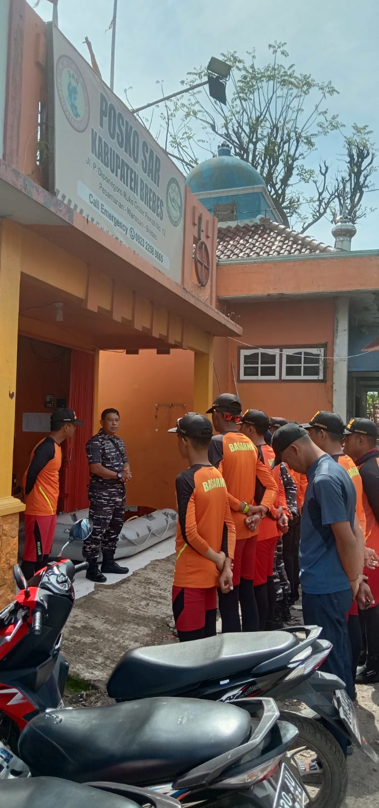 PI – Tegal, Tim SAR Lanal Tegal bersama SAR Gabungan, BPBD dan relawan mencari korban tenggelam yang terjadi di Bumiayu Dusun Genteng yang hanyut terbawa arus dan kemungkinan berada di sekitar Sungai Pemali Brebes, (04/04/2023).