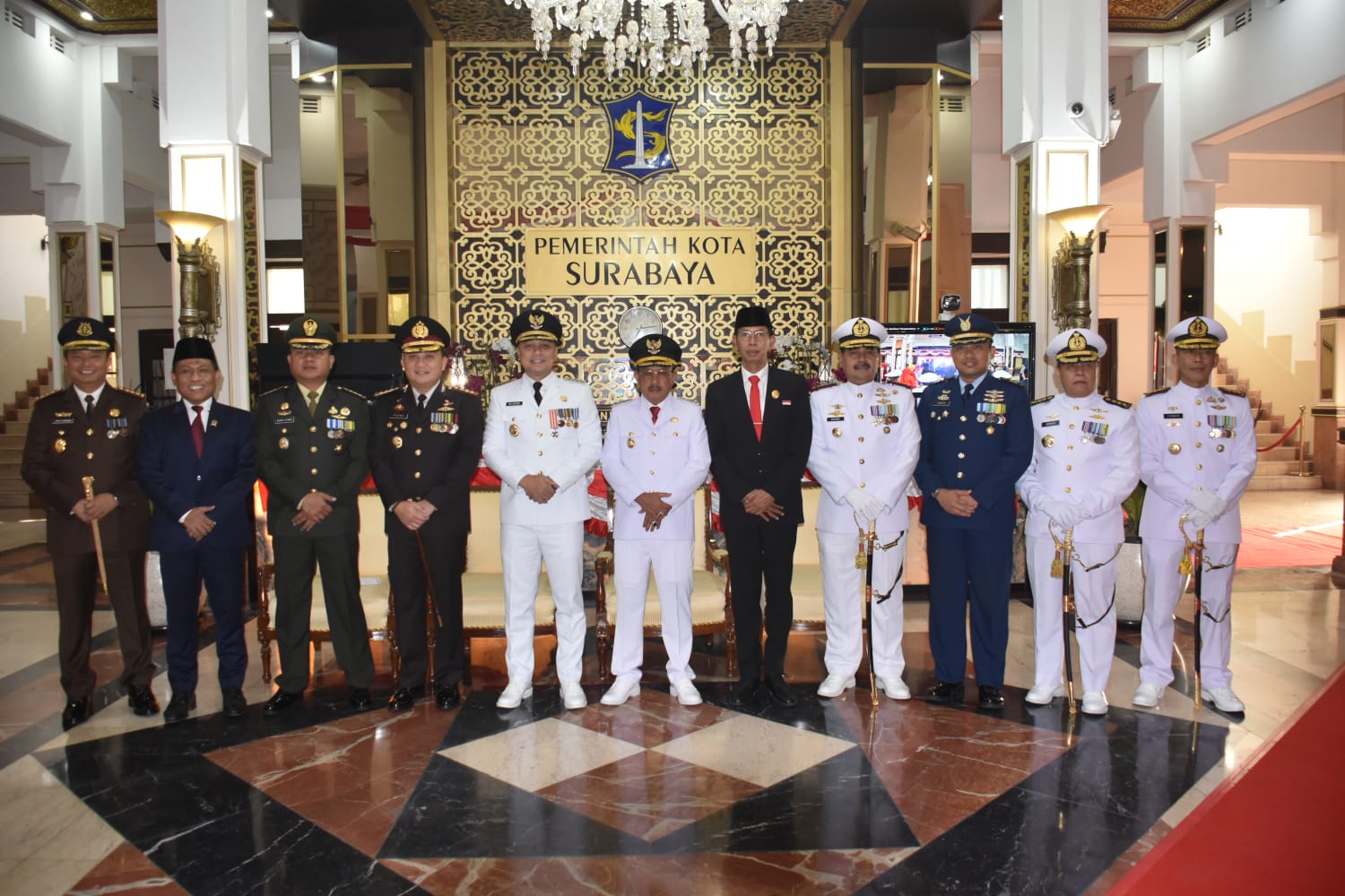 Turut hadir dalam upacara peringatan HUT Proklamasi Kemerdekaan Republik Indonesia ke-78 antara lain unsur Forkopimda Wilayah Surabaya serta Pejabat terkait lainnya.