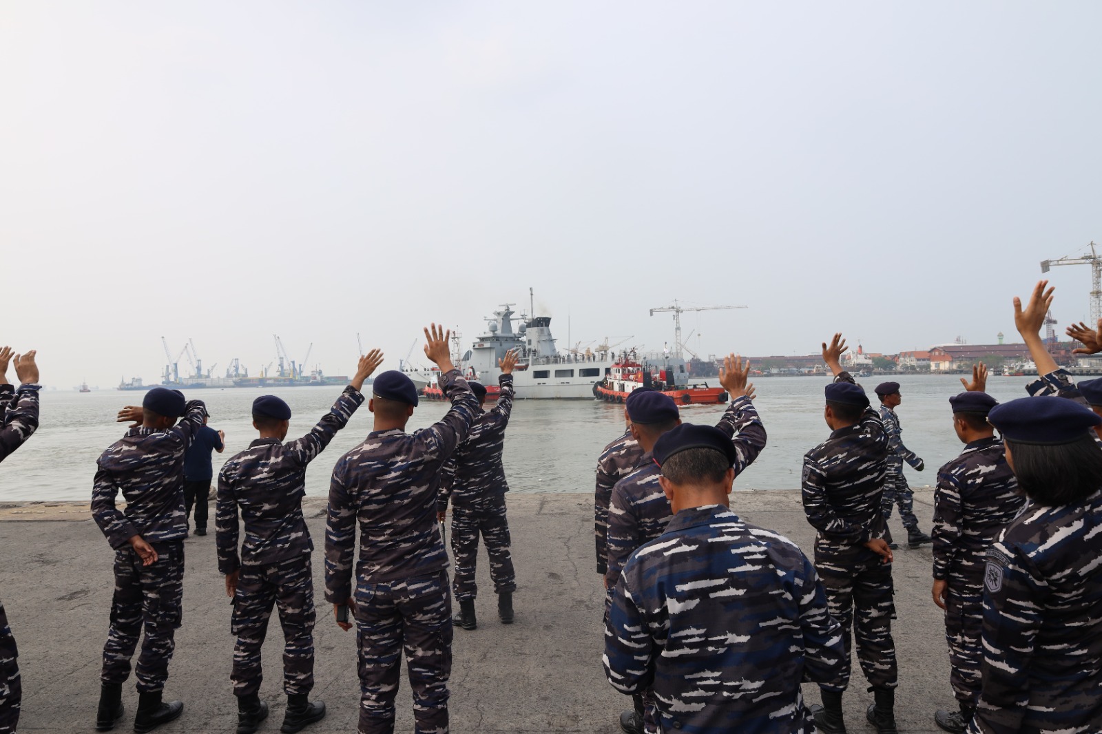 PI – Surabaya, Pangkalan Utama TNI Angkatan Laut (Lantamal) V melepas keberangkatan 2 Kapal Perang Diraja Brunei Darussalam (KDB) yaitu KDB Darulaman 08 dan KDB Syafaat 19 bertempat di Dermaga Mirah Selatan, Tanjung Perak, Surabaya. Sabtu (23/11/2024)