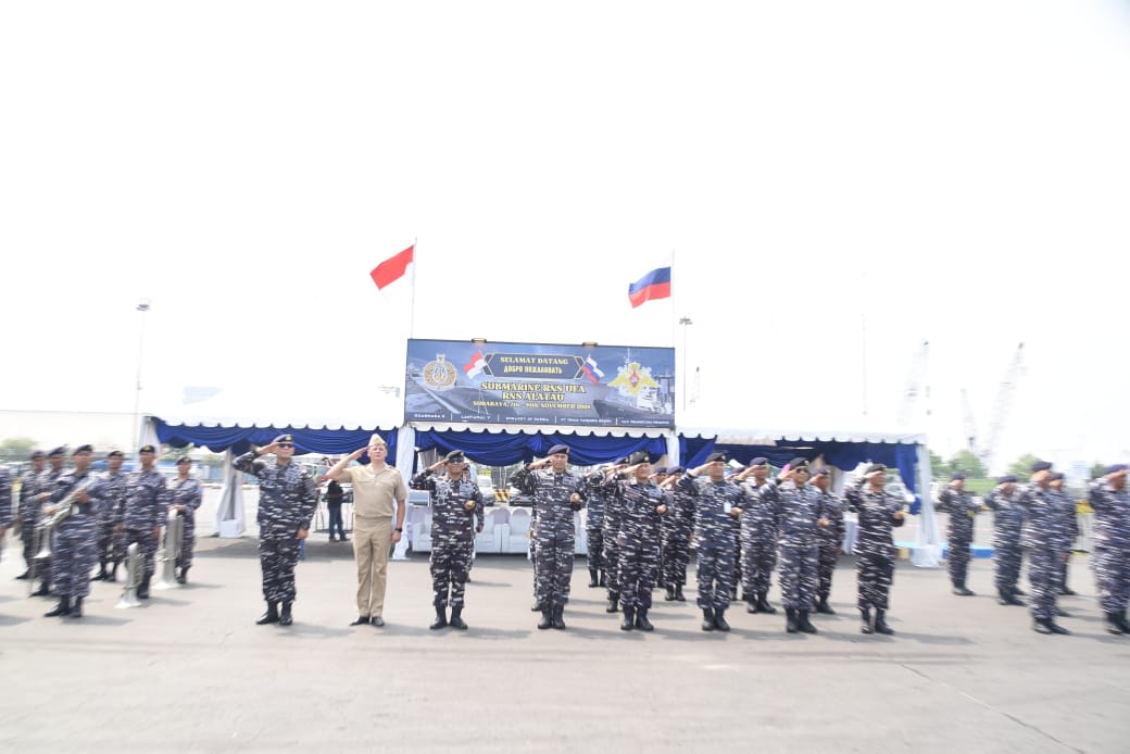 PI – Surabaya, Pangkalan Utama TNI AL (Lantamal) V melepas keberangkatan Kapal Selam AL Rusia UFA dan Rescue Tugboat Alatau (Supply Vessel) yang sandar di Dermaga Jamrud Utara, Tanjung Perak, Surabaya. Minggu (10/11/2024)
