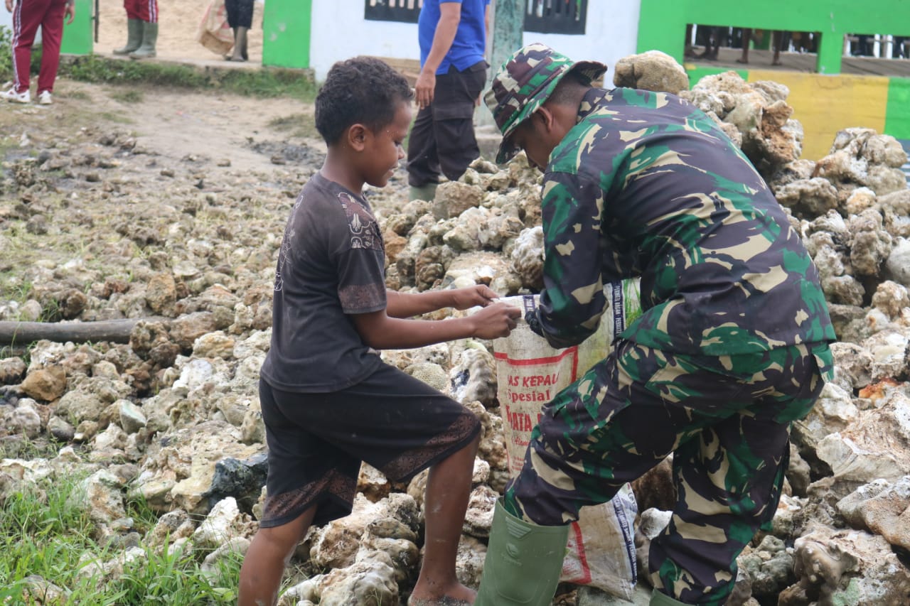 Sehingga dengan harapan mereka bisa menggunakan Peralatan Pertukangan, jadi secara tak Langsung kami ingin mengajar semangat Gotong royong yang sudah menjadi budaya Indonesia yang perlu kita jaga. Jelas Sertu Pattimura.