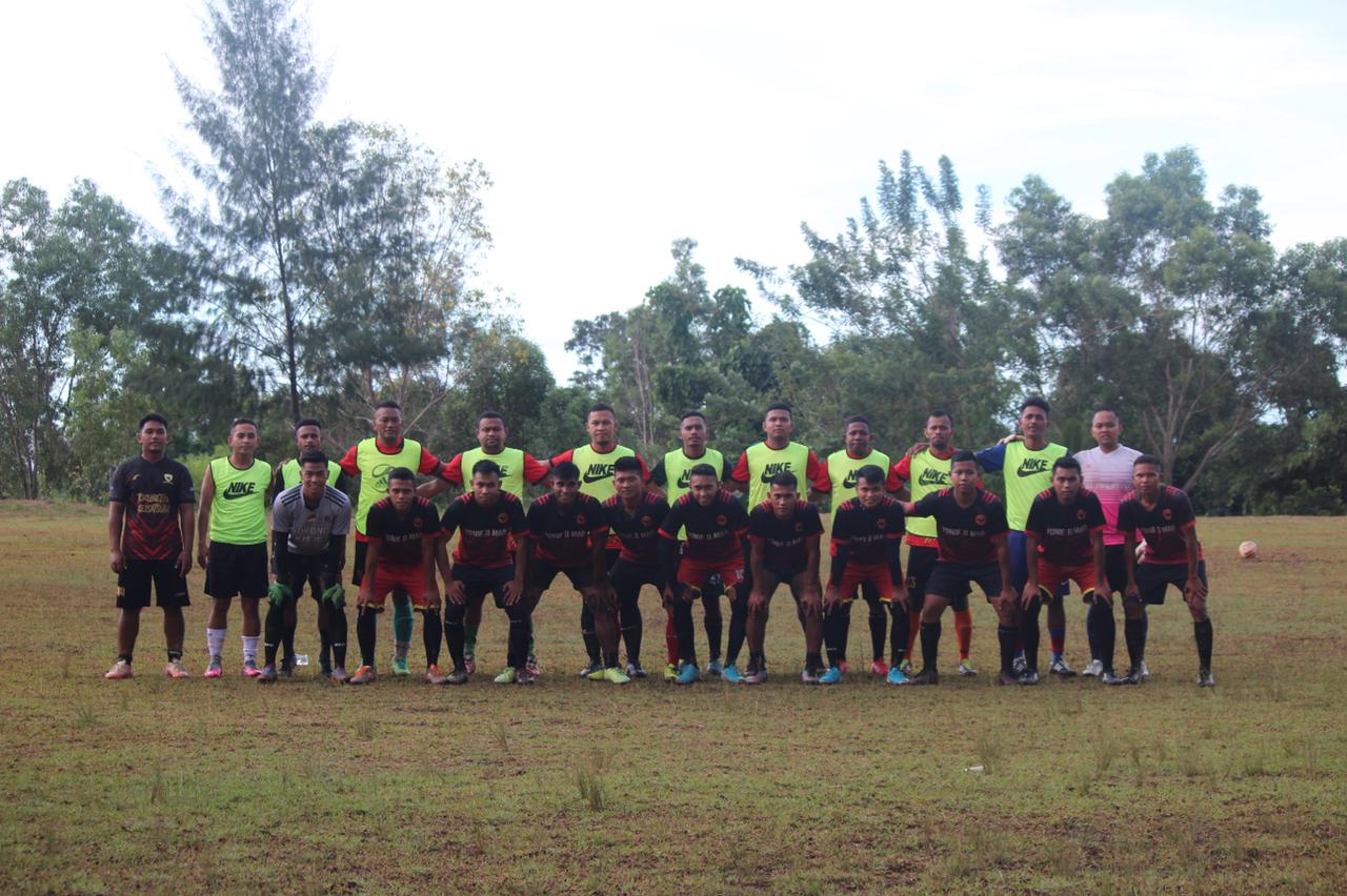 MANFAATKAN WEEKEND, PRAJURIT YONIF 11 MARINIR PASMAR 3 ADU KETANGKASAN SEPAK BOLA BERSAMA BRIMOB SORONG