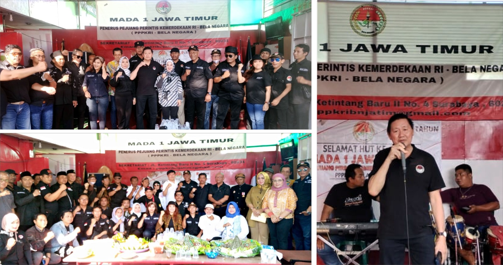 PI – Surabaya, Kamis 1/6/2023, Markas PPPKRI Bela Negara Mada I Jatim di jalan Ketintang Baru 2 No. 4 Surabaya dipadati ratusan anggotanya dan beberapa organisasi massa di Surabaya. Di markasnya itu, PPPKRI Bela Negara Mada I Jatim sedang merayaan hari lahir Pancasila 1 Juni dan sekaligus merayakan hari jadi PPKRI Bela Negara ke 16.