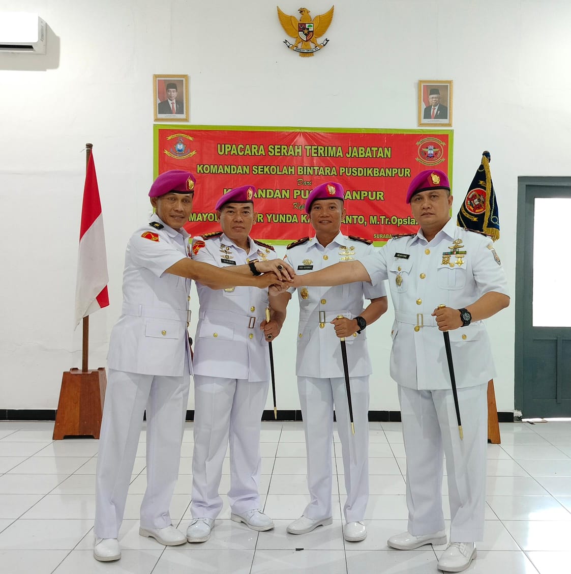 PI – Surabaya, 01 Desember 2023, Komandan Pusat Pendidikan Bantuan Tempur (Danpusdik Banpur) Kodikmar Kodiklatal, Kolonel Marinir Sunardi selaku Inspektur Upacara (Irup) mengukuhkan jabatan Komandan Sekolah Bintara (Danseba) Pusdik Banpur Kodikmar Kodiklatal, kepada Mayor Marinir Yunda Karyawanto, yang merupakan Alumni Akademi Angkatan Laut (AAL) Angkatan 52 Tahun 2007, bertempat di Pusdik Banpur Kodikmar, Gunungsari Surabaya. Jumat, (01/12/2023).