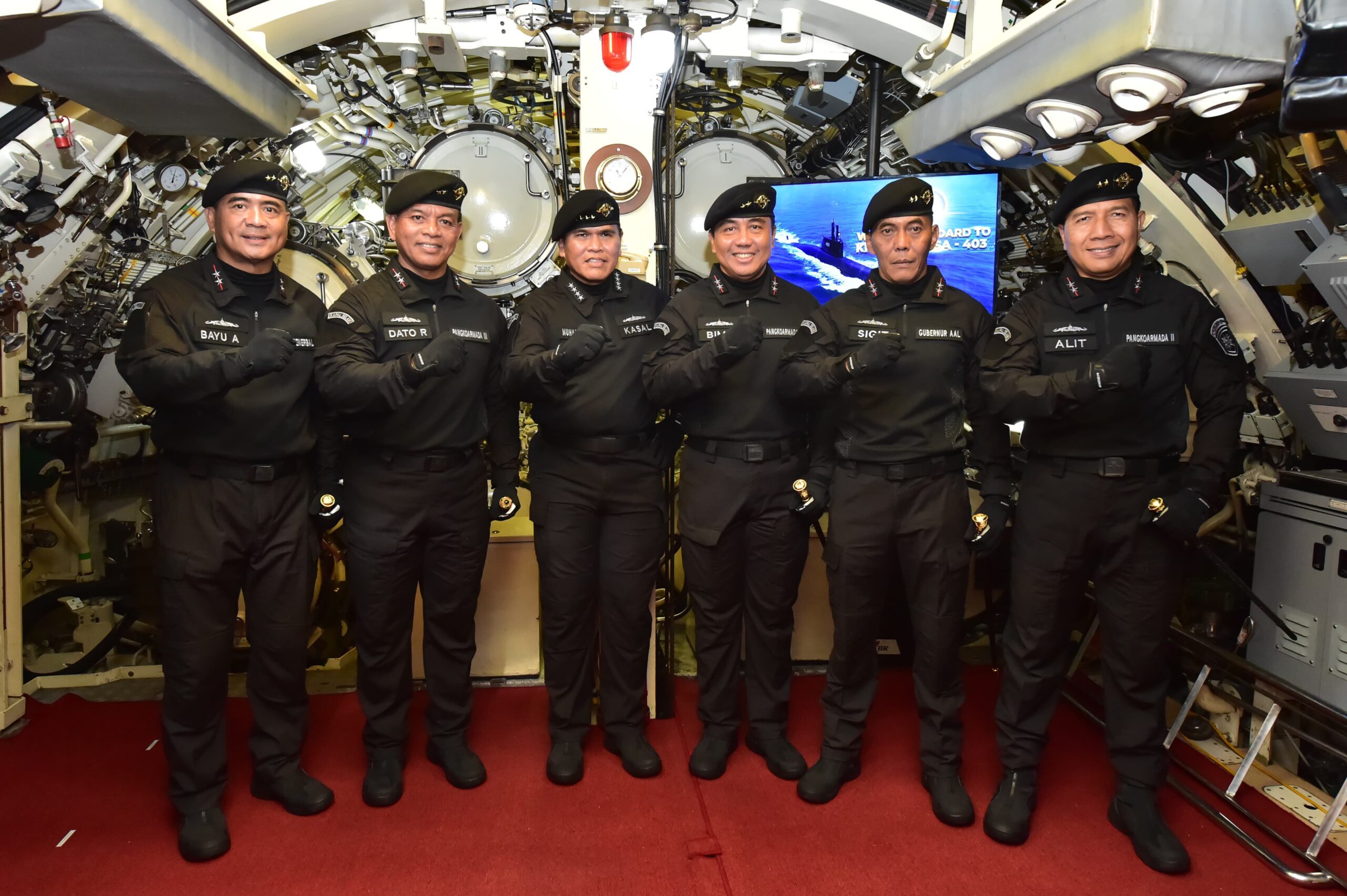 PI – Surabaya (4/12/2025). Pangkoarmada 1   Laksda TNl ArisbimaBayu Seta Menerima Brevet Kehormatan Hiu Kencana dari Kepala Staf Angkatan Laut (Kasal), Laksamana TNI Dr. Muhammad Ali di dalam Kapal Perang Republik Indonesia (KRI) Nagapasa-403 yang bertolak dari Dermaga Madura Koarmada II, Surabaya, Rabu (4/12/2025).