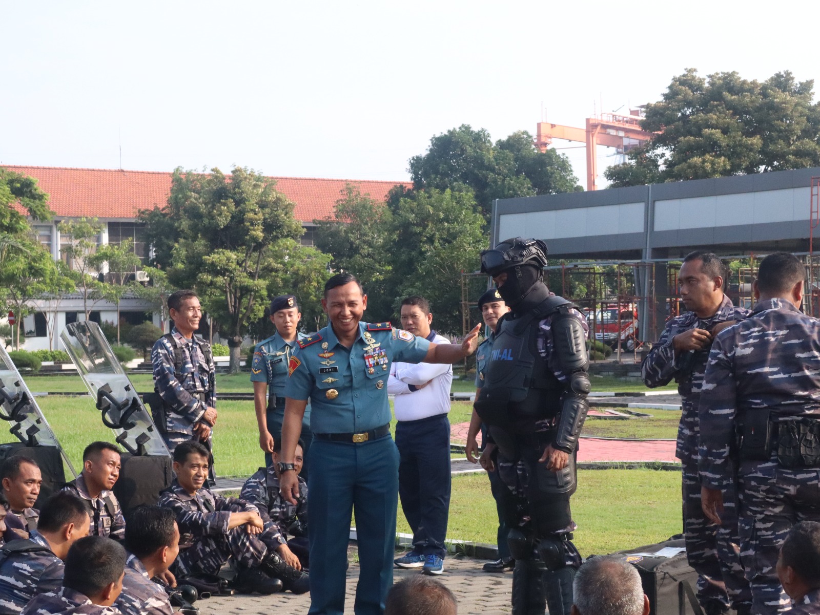“Saya harap seluruh personel PHH Lantamal V siap sedia kapanpun bila seketika diperintahkan untuk melaksanakan dukungan pengamanan ketika ada kerusuhan, serta diharapkan seluruh prajurit paham dan mengerti cara penggunaan alat kelengkapan yang baru yaiti body protector,” ucap Danlantamal V.
