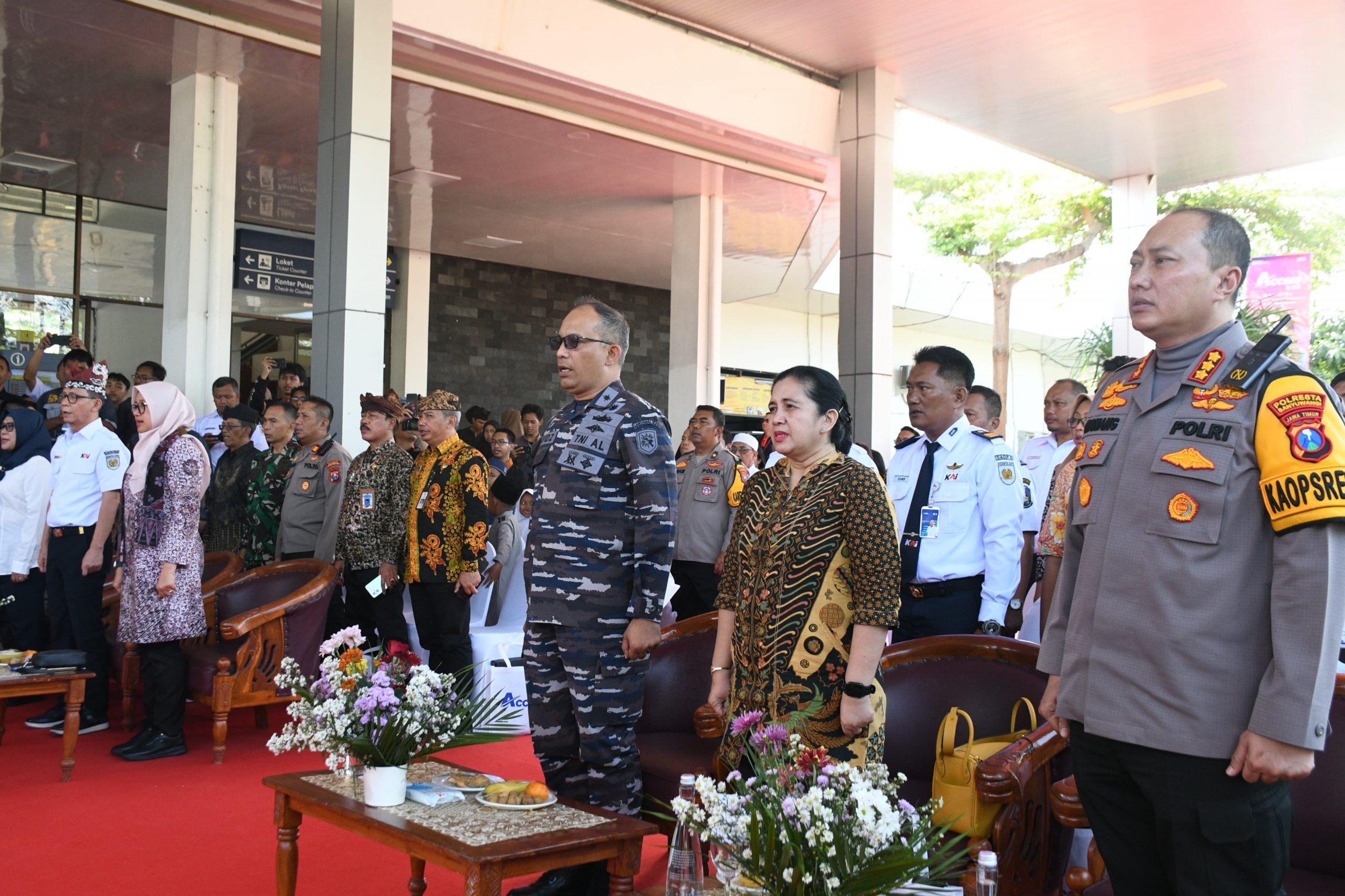 PI – Banyuwangi, Komandan Pangkalan TNI AL Letkol Laut (P) Hafidz, M.Tr.Opsla bersama jajaran Forkopimda Banyuwangi menghadiri peresmian perpanjangan relasi Kereta Api Blambangan Express di Stasiun Ketapang Banyuwangi Jl. Raya Situbondo Ketapang Banyuwangi. (26/07/2024)