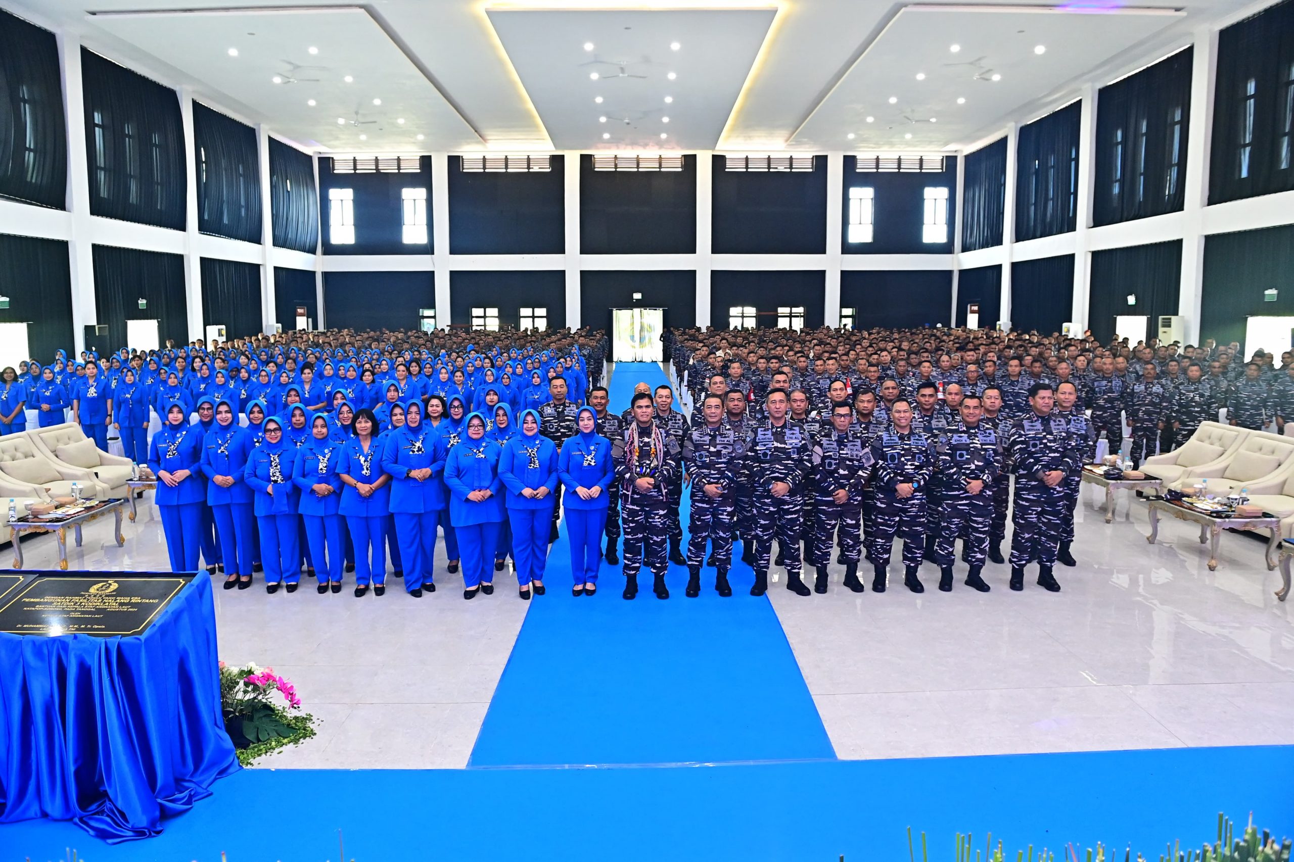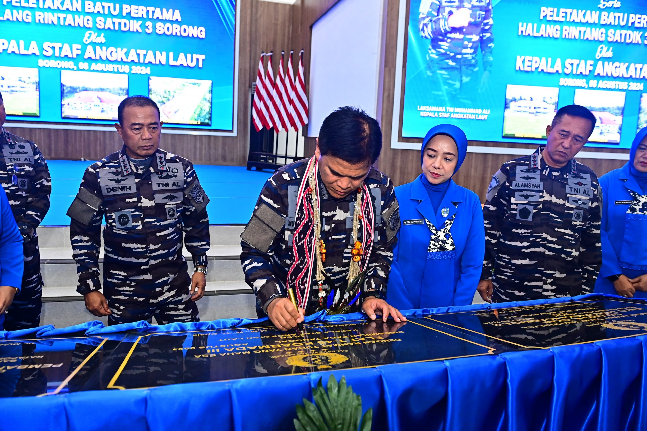 PI – Sorong, , 08 Agustus 2024 Komandan Kodiklatal Letjen TNI Marinir Nur Alamsyah didampingi Ketua Gabungan Jalasenastri Kodiklatal Ny. Ayu Nur Alamsyah menyaksikan peresmian sejumlah fasilitas Satuan TNI Angkatan Laut (TNI AL) oleh Kepala Staf Angkatan Laut (Kasal) Laksamana TNI Dr. Muhammad Ali, bertempat di wilayah Komando Armada III Sorong, Papua. Kamis (08/08/2024).