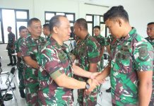 PI – Jakarta, 08 Maret 2024, Dalam rangka pergantian Jabatan Strategis TNI Angkatan Laut (TNI AL), Komandan Kodiklatal (Dankodiklatal) Letjen TNI Marinir Nur Alamsyah didampingi Ketua Gabungan Jalasenastri Kodiklatal Ny. Ayu Nur Alamsyah menghadiri Upacara Serah Terima Jabatan (Sertijab) Panglima Komando Armada Republik Indonesia (Pangkoarmada RI) dari Laksdya TNI Heru Kusmanto kepada Laksdya TNI Dr. Denih Hendrata, yang dipimpin Kepala Staf Angkatan Laut (Kasal) Laksamana TNI Dr. Muhammad Ali, bertempat di Lapangan Arafuru Mako Koarmada RI, Jakarta. Jumat (08/03/2024).
