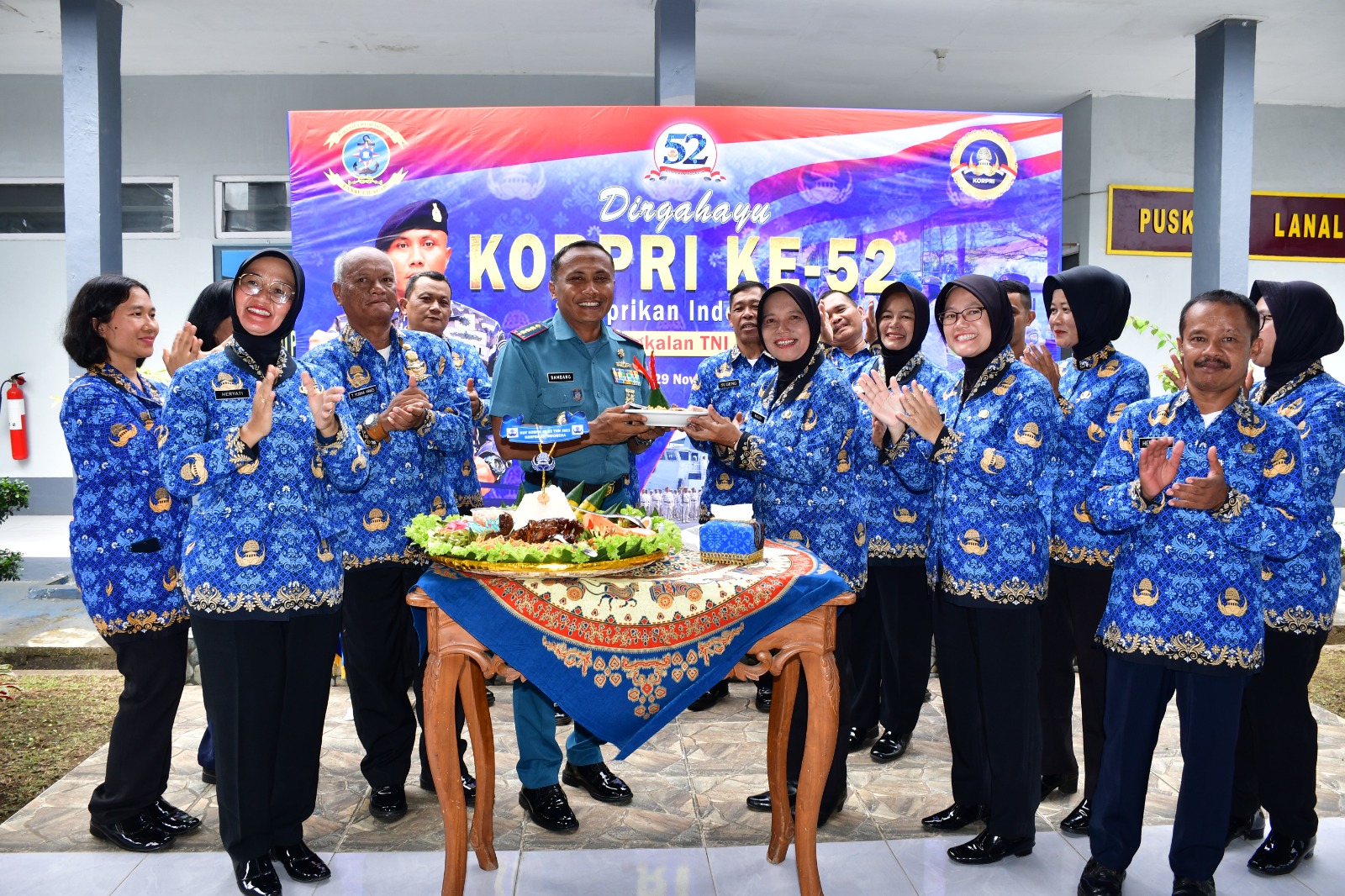 PI – Cilacap, Dengan tema ” Korprikan Indonesia” Pangkalan TNI Angkatan Laut (Lanal) Cilacap menggelar Tasykuran dalam rangka peringatan ke- 52 Hari Ulang Tahun (HUT) Korps Pegawai Negeri Republik Indonesia (Korpri) di Aula Wijayakusuma, Lanal Cilacap. (29/11/2023).