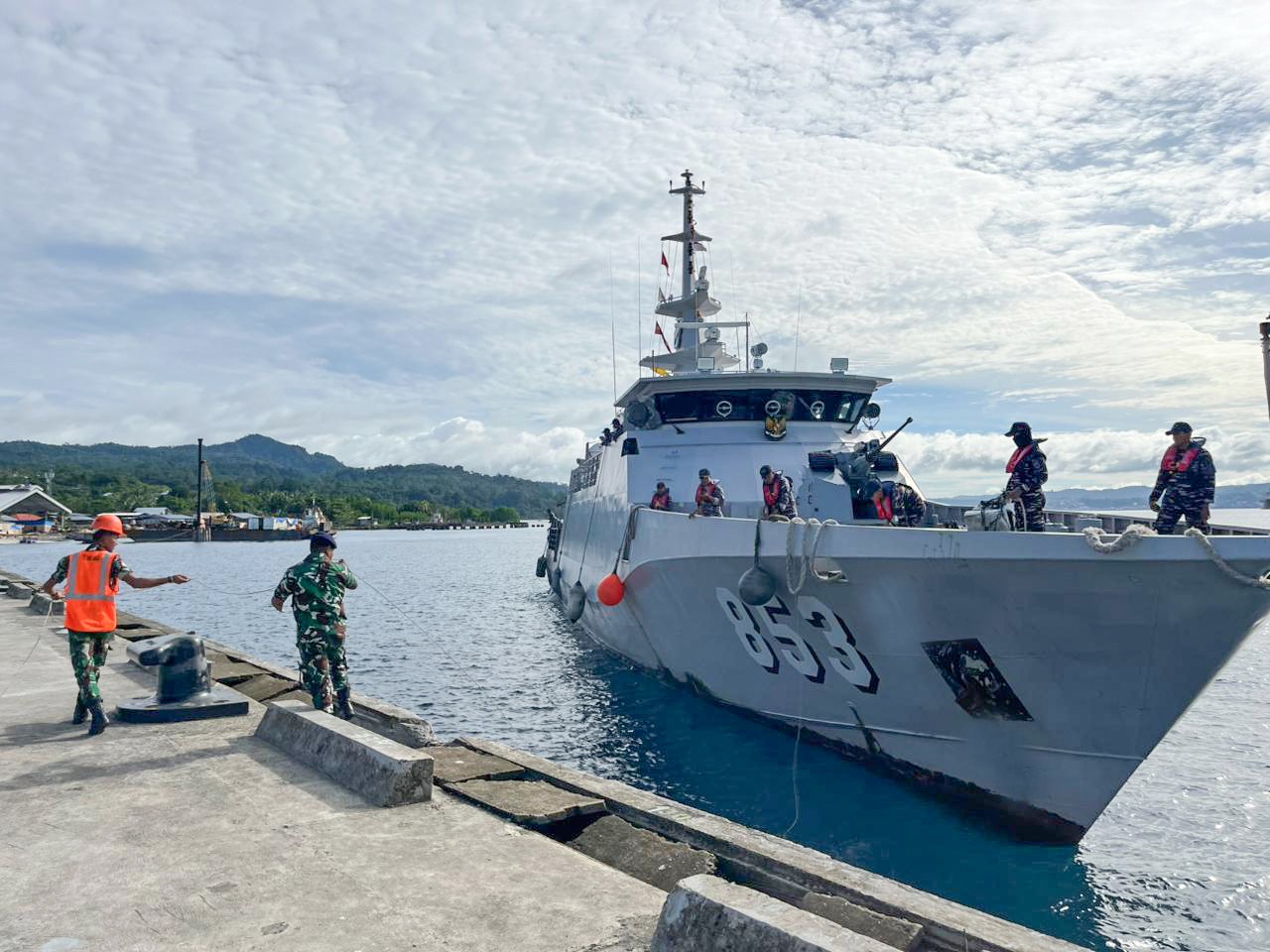 Kedatangan KRI Tatihu-853 ini disambut dengan upacara Merflug oleh jajaran pejabat dan personel Kodaeral IX sebagai bentuk penghormatan dan prosedur tetap (Protap) penyambutan unsur KRI yang memasuki pangkalan TNl AL.