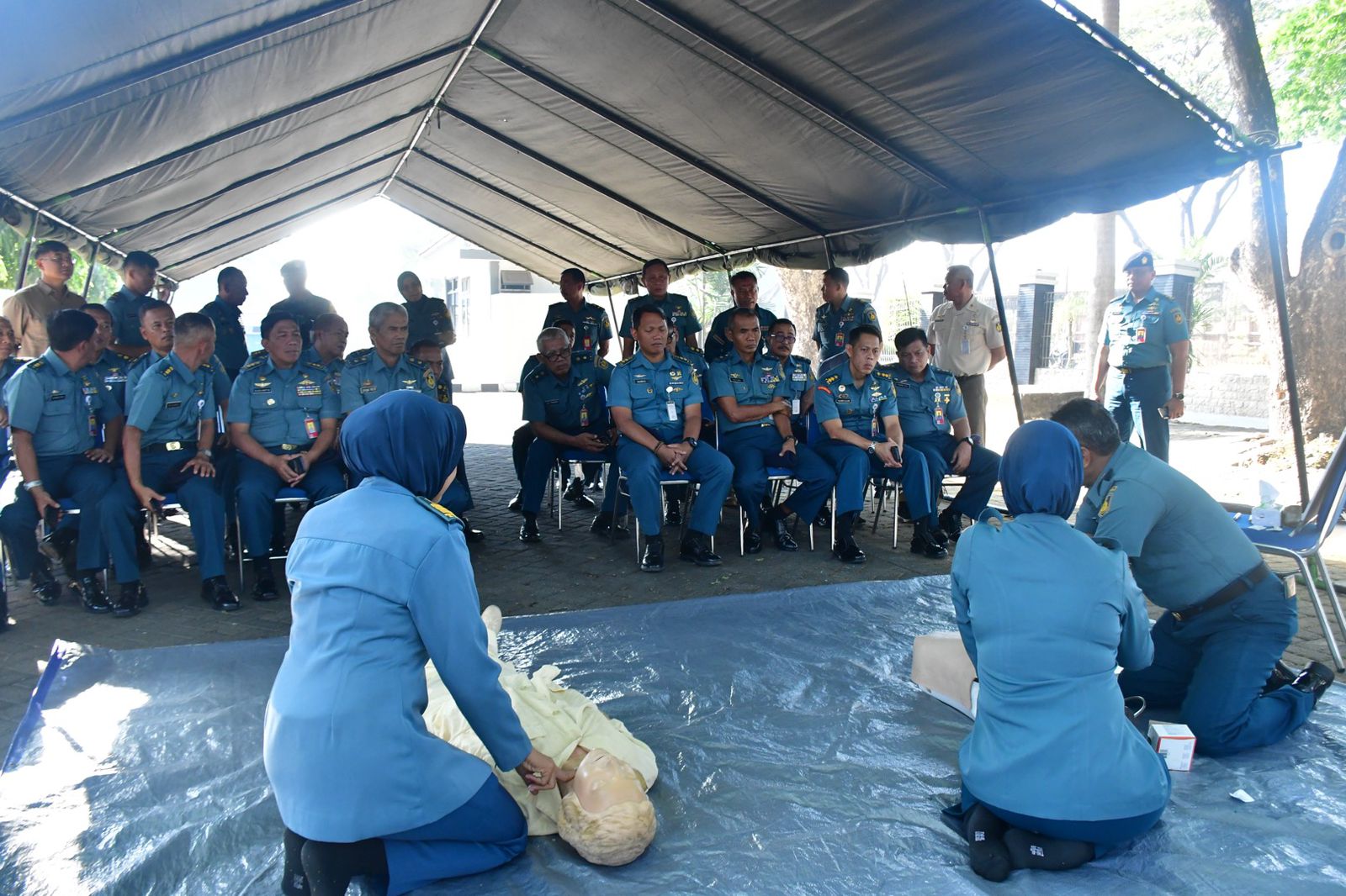 Dalam upaya memberikan pengetahuan tentang pertolongan pertama pada kecelakaan dan kedaruratan, puluhan Perwira Menengah (Pamen) dan Perwira Pertama Mako Puspenerbal mengikuti Sosialisasi Bantuan Hidup Dasar (BHD) di Lapangan Apel Mako Puspenerbal, Juanda (4/9/2024).