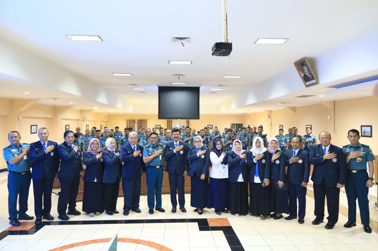 Tampak hadir Wakil Rektor ll UHT, Laksda TNl (Purn) Dr. Iwan Isnurwanto beserta staf mewakili Rektor UHT, Laksda TNl (Purn) Dr. Ir. Avando Bastari, lnspektur Puspenerbal, para Direktur Puspenerbal, para Kasatker Puspenerbal, perwira dan personel Puspenerbal perserta sosialisasi lainnya.
