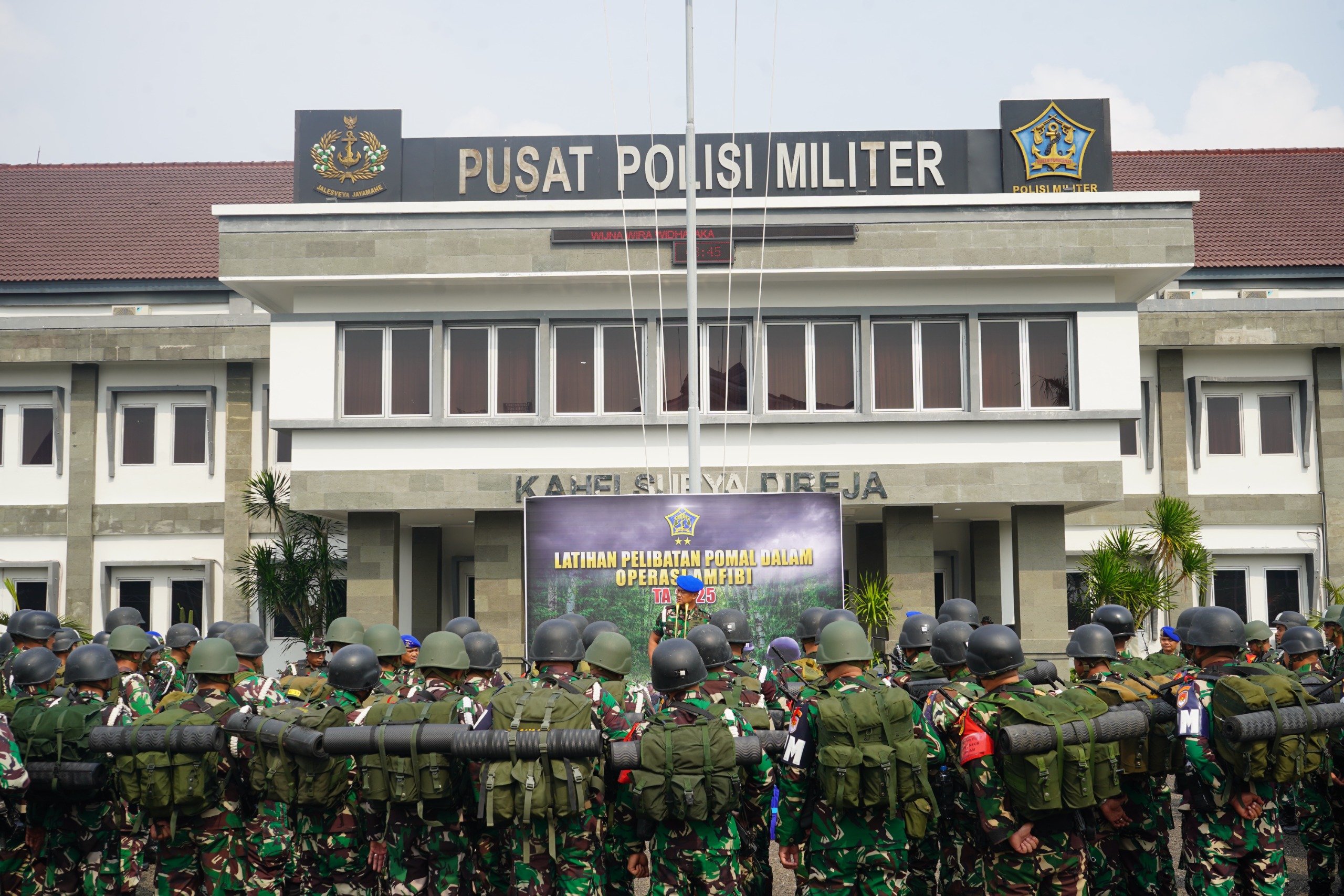 PI – Jakarta, Guna meningkatkan profesionalisme prajurit dalam pelaksanaan Operasi Militer Perang (OMP), Pusat Polisi Militer Angkatan Laut (Puspomal) menggelar Latihan Pelibatan Pomal dalam Operasi Amfibi TA. 2025 yang dibuka secara langsung oleh Komandan Puspomal (Danpuspomal) Mayor Jenderal TNI (Mar) Harry Indarto, S.E., M.M., bertempat di Lapangan Apel Mako Puspomal, Kelapa Gading, Jakarta Utara, Senin (20/10/2025).