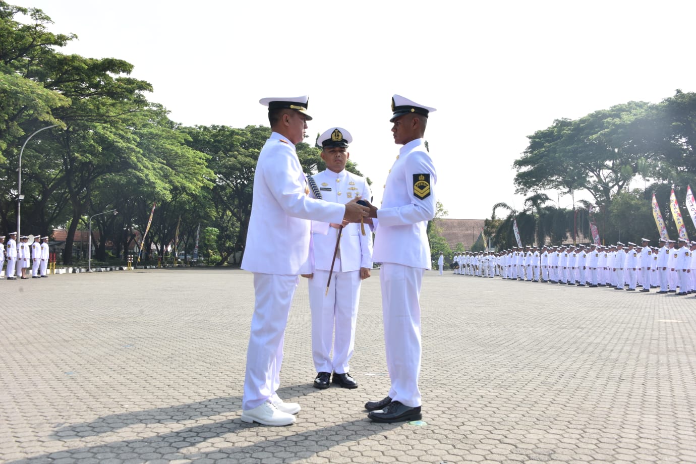 PI – Surabaya, 05 Maret 2024, Sebanyak 595 Siswa Pendidikan Pertama Bintara (Dikmaba) TNI Angkatan Laut (TNI AL) Angkatan 43/2 TA. 2023, hari ini melaksanakan Upacara Pelantikan dan Penyumpahan Siswa yang dipimpin oleh Komandan Kodiklatal (Dankodiklatal) Letjen TNI Marinir Nur Alamsyah, bertempat di Lapangan Candradimuka Puslatdiksarmil, Juanda Sidoarjo. Selasa (05/03/2024).