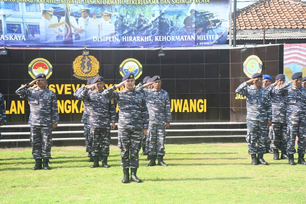 PI – Banyuwangi, Dalam rangka rotasi jabatan dijajaran Pangkalan TNI AL (Lanal) Banyuwangi, Danlanal Banyuwangi Letkol Laut (P) Indra Nusha R, mengukuhkan Lettu Laut (P) Sugeng Mujianto sebagai Komandan Pos TNI AL (Danposal) Puger yang dilaksanakan di Lapangan Apel Mako Lanal Banyuwangi Jl. Raya Situbondo No. 54 Ketapang Banyuwangi. (15/02/2024).