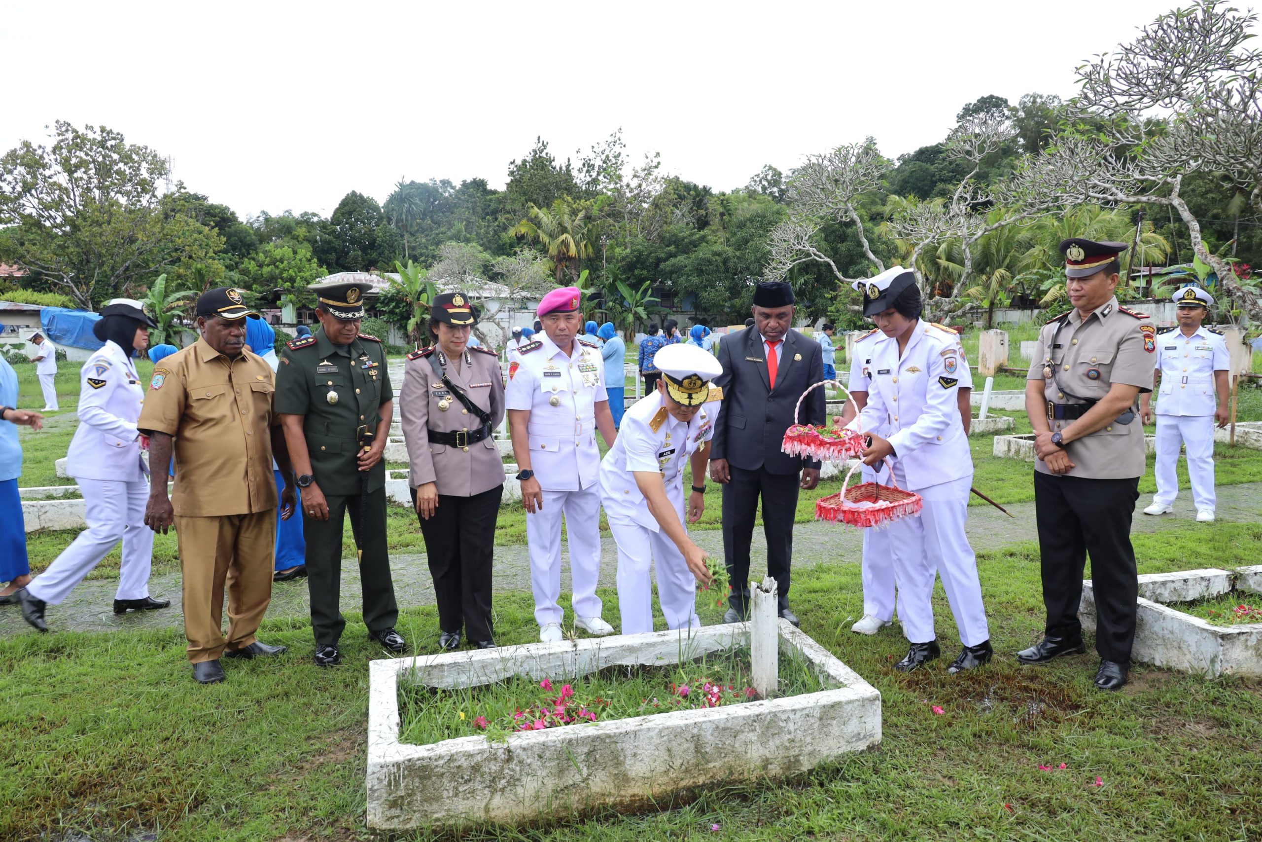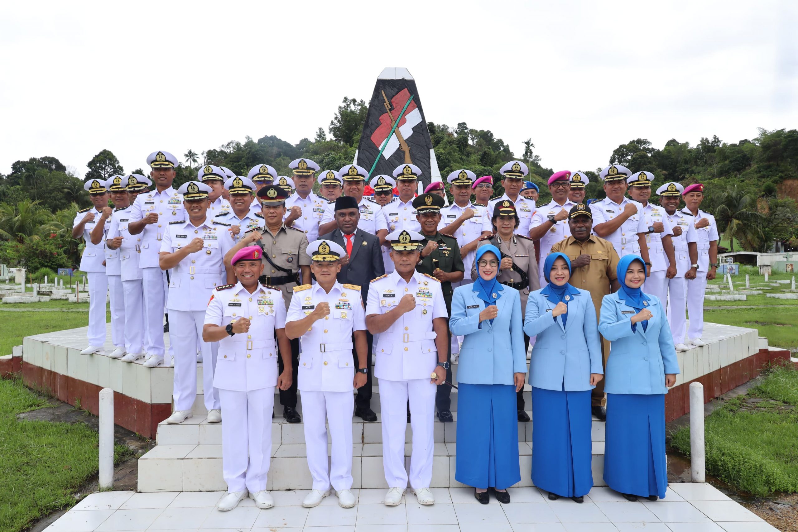 PI – Sorong, Inspektur Koarmada III Laksamana Pertama TNI Azil Sadagori Achmad mewakili Panglima Komando Armada III Laksamana Muda TNI Hersan, S.H., M.Si. memimpin pelaksanaan Ziarah Rombongan dalam rangka memperingati Hari Ulang Tahun (HUT) ke-79 TNI Angkatan Laut Tahun 2024 yang dilaksanakan di Taman Makam Pahlawan Tri Jaya Sakti Kota Sorong bersama keluarga besar TNI AL Wilayah Sorong. Selasa, (03/09/24)