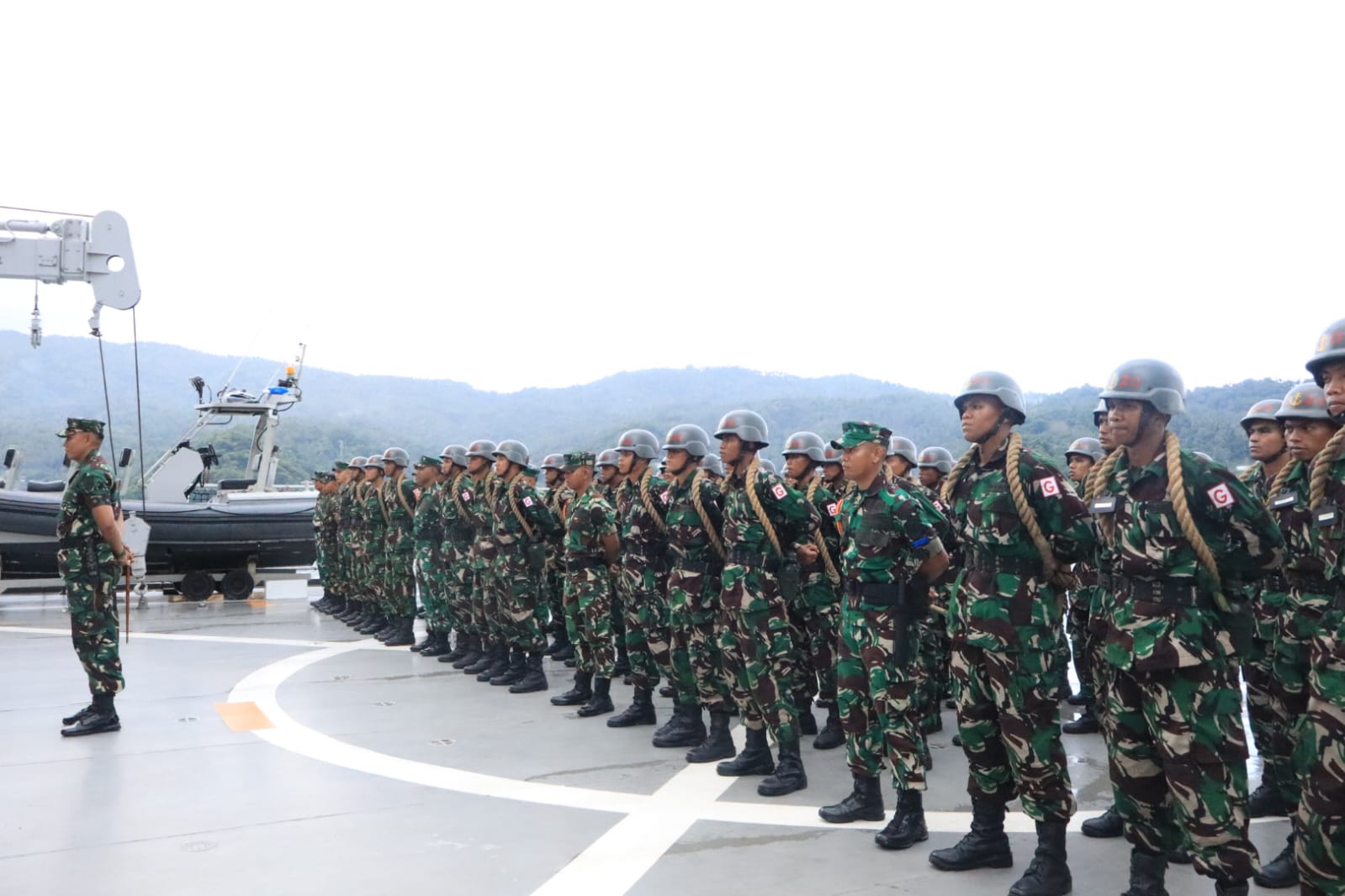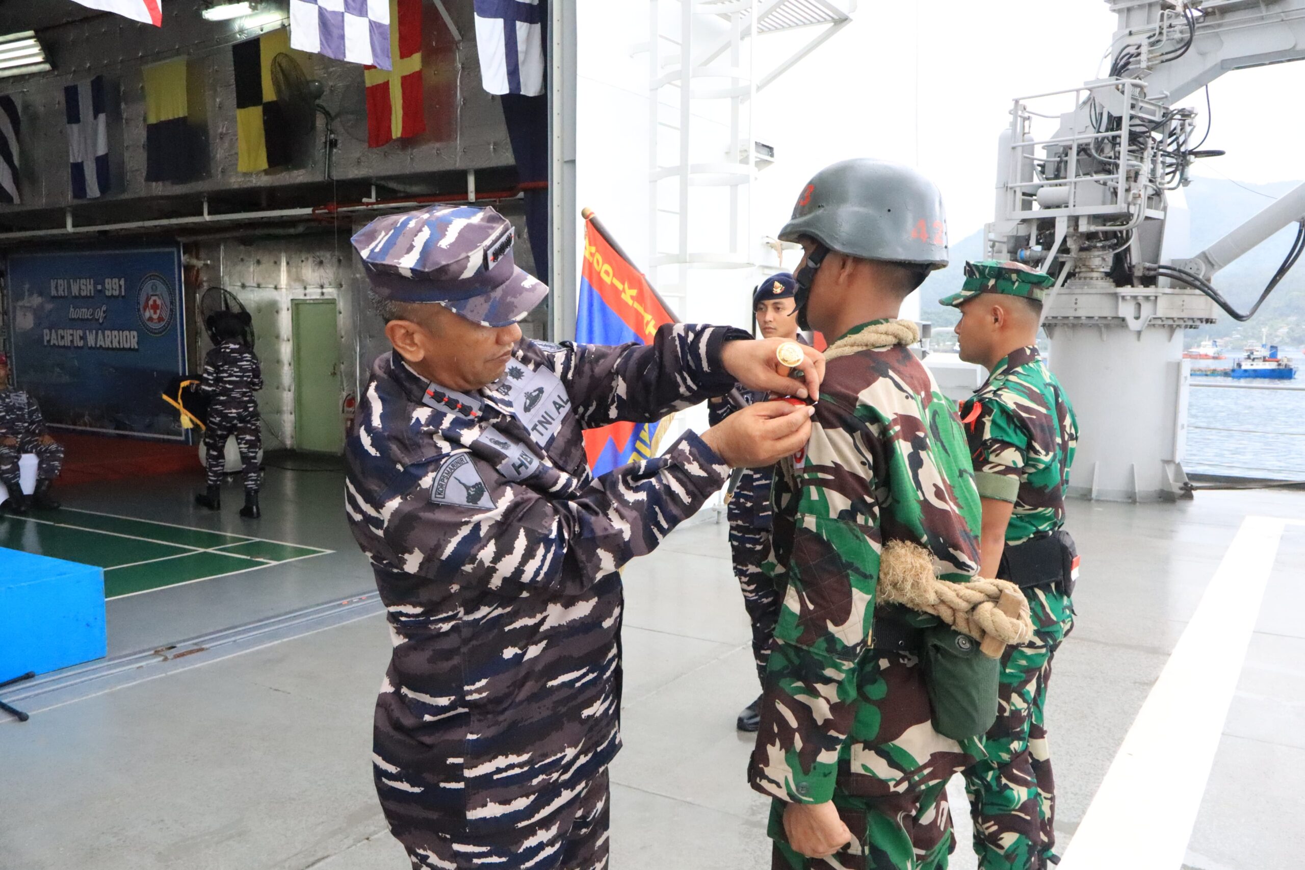 PI – Manado, 22 Mei 2025 Komandan Satdik-4 Kodiklatal Kolonel Marinir Hendy Dwibayu A., memimpin acara Penyematan Tanda Orientasi Siswa dan Penyerahan Bendera Satdik-4 Kodiklatal kepada Siswa Dikmata TNI AL Angkatan XLV/I TA 2025 bertempat di Geladak Helly KRI dr. Wahid Sudirohusodo (WSH)-991 setibanya di Pelabuhan Samuel Languyu (Samla) Satrol Lantamal VIII Bitung. Selasa (20/05/2025)