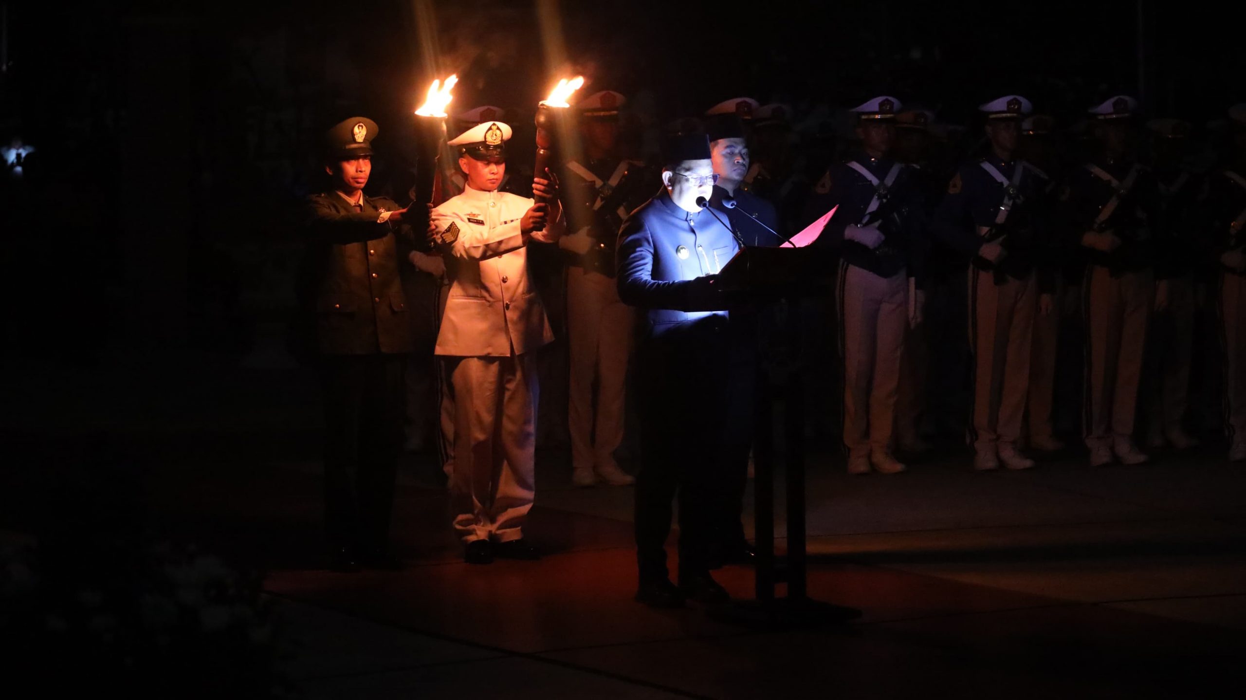 Upacara yang dipimpin oleh Pj. Gubernur Jatim, Bapak Adhy Karyono, berlangsung khidmat dengan rangkaian kegiatan, penghormatan kepada arwah Pahlawan, pembacaan naskah apel kehormatan dan renungan suci, mengheningkan cipta. penyalaan obor dan lilin, pembacaan do’a dan penghormatan akhir kepada arwah Pahlawan.
