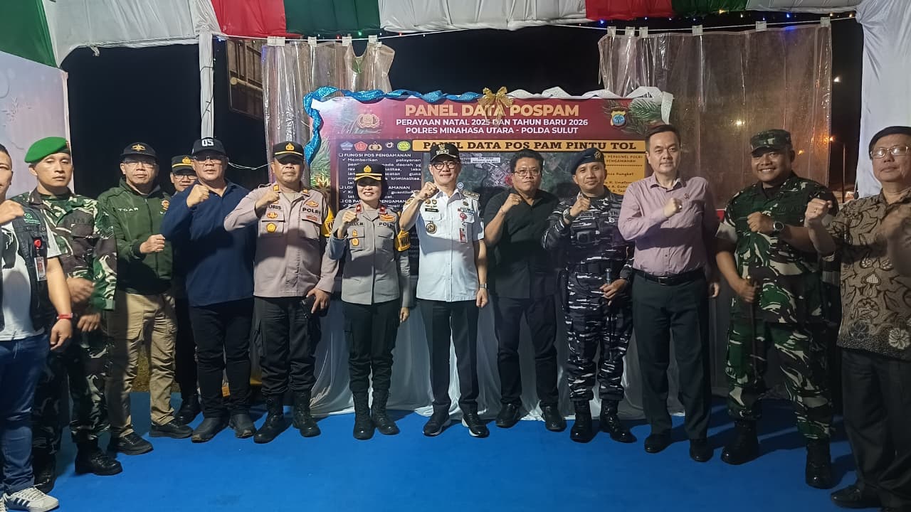 Komandan Lanudal Manado Letkol Laut (P) Akhmad Sen Sagupta bersama Unsur Forkopimda Minahasa Utara meninjau Langsung Pos Pengamanan Natal 2025 dan Tahun Baru 2026 di Wilayah Kab. Minahasa Utara, Sulawesi Utara malam Natal lalu.