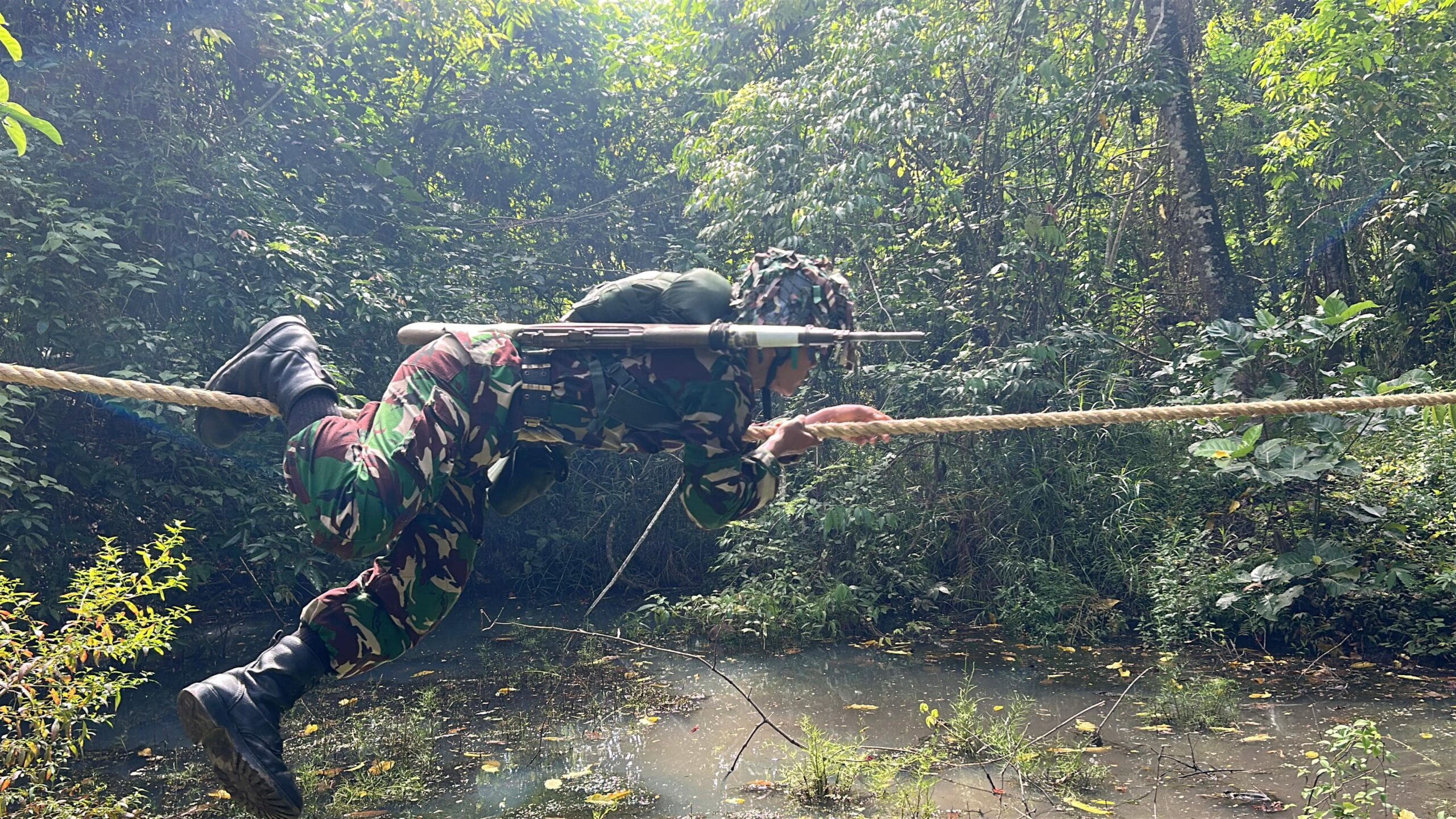 PI – Manado, 18 Juli 2025 Siswa Pendidikan Pertama Tamtama (Dikmata) TNI AL Angkatan XLV/I Satdik-4 Kodiklatal melaksanakan Jurit Tangkas sebagai salah satu materi dalam rangkaian Latihan Praktek (Lattek) Berganda. Jumat (18/7).