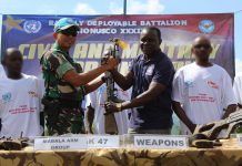 Paradigmaindonesia - Jakarta, 12 Mei 2022, Satgas Batalyon Gerak Cepat (BGC) Konga TNI XXXIX-D/Monusco memfasilitasi penyerahan diri kelompok milisi RM Mabala pimpinan Mr Justin Mabala kepada Disarmament Demobilization Repatriation..