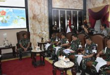 Komandan Pasmar 3 Brigjen TNI (Mar) Y. Rudy Sulistyanto, S.E didampingi Wadan Pasmar 3 Kolonel Mar Nanang Saefulloh, S.E., para Asisten, Dankolak dan Dansatlak Pasmar 3 menyambut kunjungan kerja Tim..