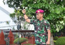 Paradigmaindonesia - Surabaya, 23 Mei 2022, Inspektur Komando Pembinaan Doktrin, Pendidikan dan Latihan TNI Angkatan Laut (Irkodiklatal) Brigjen TNI (Mar) Amir Faisol memimpin Apel gabungan yang diikuti prajurit, PNS serta..