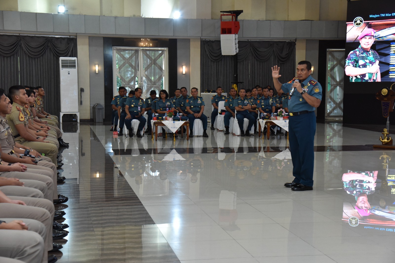 PI – Surabaya, Gubernur Akademi Angkatan Laut (AAL) Mayjen TNI (Mar) Endi Supardi memberikan pembekalan kepada Taruna Tingkat III dan IV yang di gelar di gedung Maspardi Kesatrian AAL, Bumimoro Surabaya, Kamis (4/5).