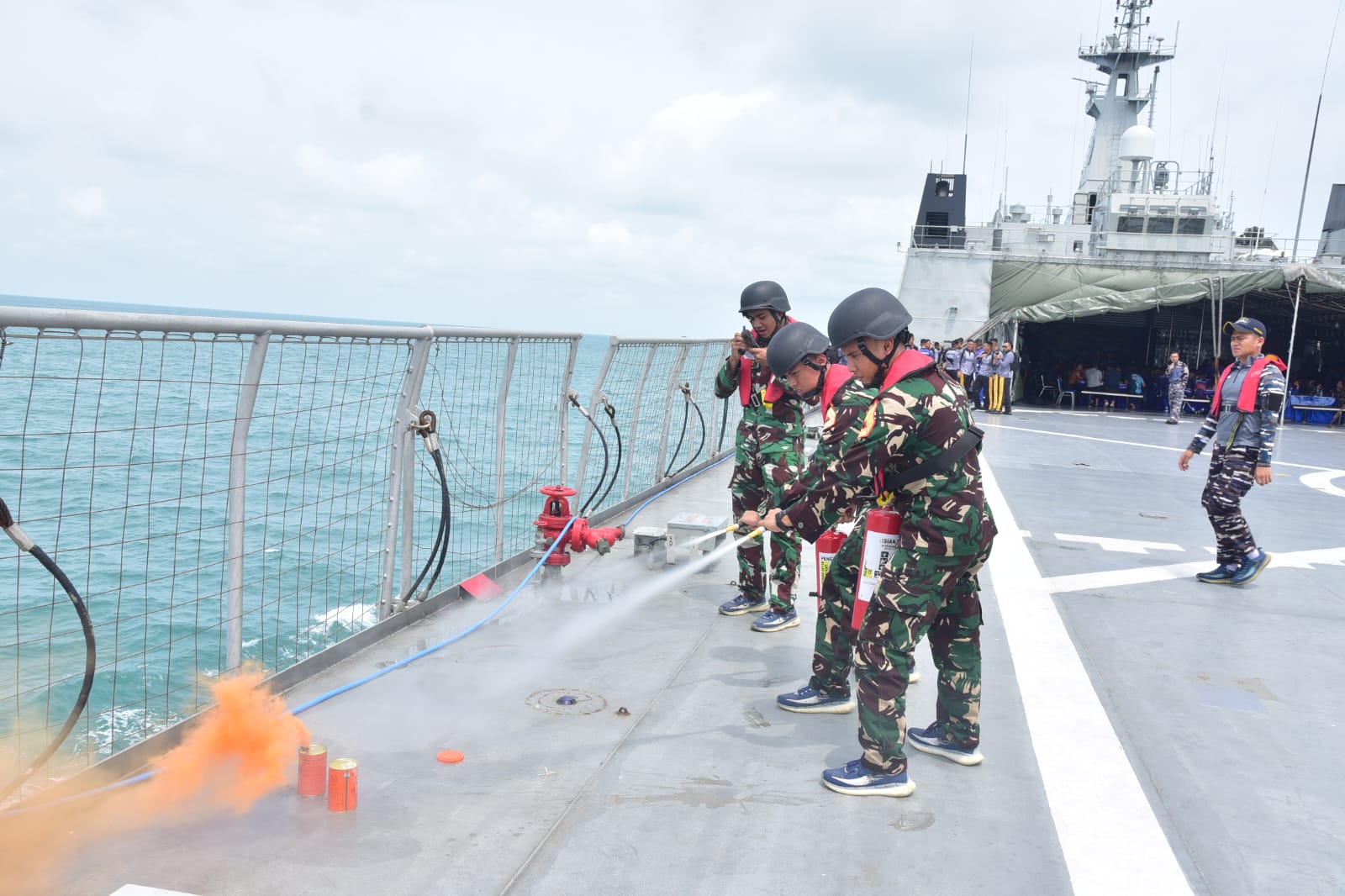 PI – Pulau bangka, Dalam rangka meningkatkan profesionalisme dan kesiapsiagaan prajurit matra laut, Taruna Akademi Angkatan Laut (AAL) tingkat III angkatan ke-72 melaksanakan Peran Penanggulangan Bahaya Kebakaran (PEK) selama pelayaran menuju daerah tujuan Latihan Integrasi Taruna Wreda Nusantara (Latsitardanus) 2026 di atas KRI Banda Aceh.