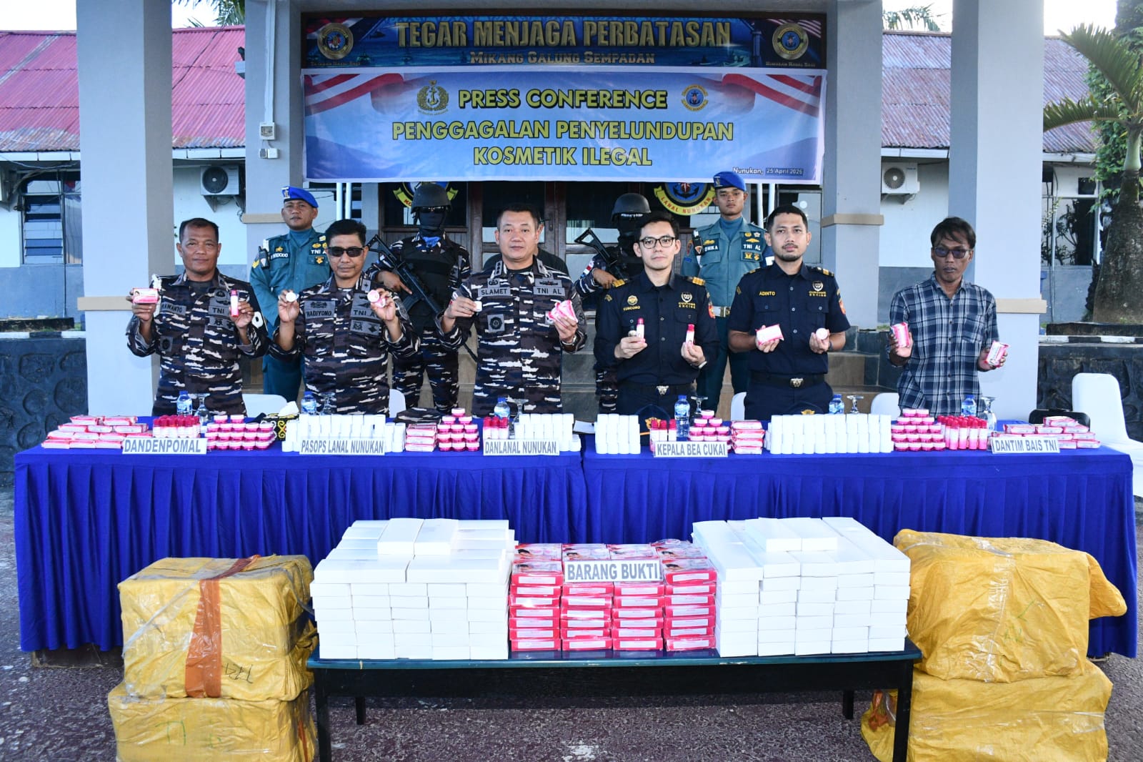 PI – Tarakan, 25 April 2026 Tim gabungan Kodaeral XIII terdiri dari tim Quick Response_ Lanal Nunukan bersama unsur Intelijen TNI berhasil menggagalkan upaya penyelundupan kosmetik ilegal asal Tawau, Malaysia, yang masuk melalui jalur perairan Sebatik, Kabupaten Nunukan, Kalimantan Utara. Sabtu (25/04).