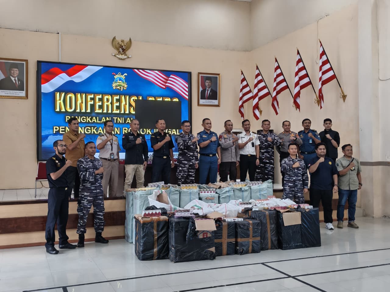 Konferensi pers dipimpin langsung oleh Komandan Lanal Mataram Kolonel Laut (P) Asep Tri Prabowo, S.T., M.Tr.Opsla., CRMP., M.A., yang memaparkan kronologi penindakan terhadap distribusi rokok ilegal yang diduga berasal dari Surabaya dengan tujuan Bima melalui jalur Pelabuhan Lembar. Kegiatan tersebut turut dihadiri oleh KBO Sat Samapta Polres Kota Mataram IPDA Dewa Putu Suarayasa, perwakilan Polairud NTB Kompol Aloy, Dandenpomal Lanal Mataram Mayor Laut (PM) Makmun, Pasintel Lanal Mataram Kapten Laut (KH) Mohammad Bono, Danunit Intel Lanal Mataram Kapten Laut (E) I Made Suwardana, Kepala Subbagian Umum Bea Cukai Mohammad Roni, Kepala Keselamatan Berlayar, Penjagaan dan Patroli KSOP Kelas III Lembar Andik Sudarmawan, M.M., serta awak media.