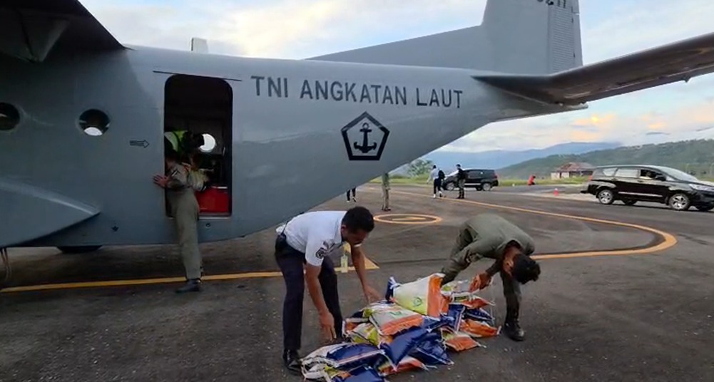 Bantuan yang disalurkan antara lain berupa bahan pokok bagi masyarakat (beras, mie instan, air mineral, makanan bayi, susu bayi, pakaian layak pakai) berhasil diturunkan melalui dukungan logistik cepat.
