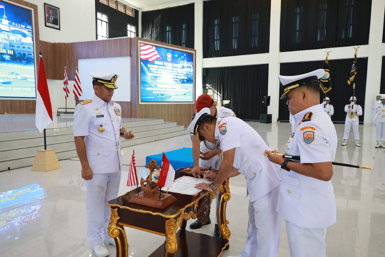 PI – Sorong, 12 Juni 2025 Panglima Komando Armada III Laksamana Muda TNI Hersan, S.H., M.Si., memimpin langsung upacara Serah Terima Jabatan (Sertijab) sejumlah pejabat strategis serta pengukuhan jabatan baru di lingkungan Koarmada III, Kamis (12/6). Acara berlangsung khidmat di Gedung Serba Guna (GSG) Mas Pardi, Markas Koarmada III, Katapop.