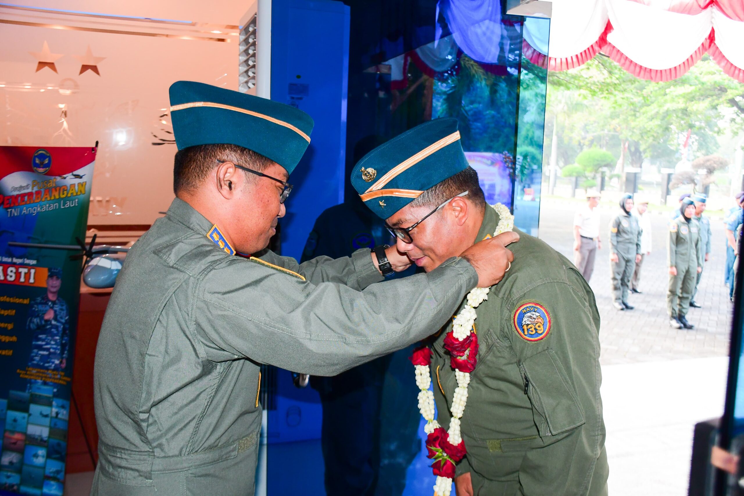 Acara dilanjutkan dengan Pengalungan Bunga oleh Inspektur Puspenerbal, Kolonel Laut (S) Johannes Tambunan mewakili Komandan Puspenerbal, Laksda TNl Bayu Alisyahbana yang dihadiri para Direktur Puspenerbal, Danwing Udara 2, Danlanudal Juanda, Dankolat Penerbal dan Kafasharkan Pesud serta para perwira staf lainnya.