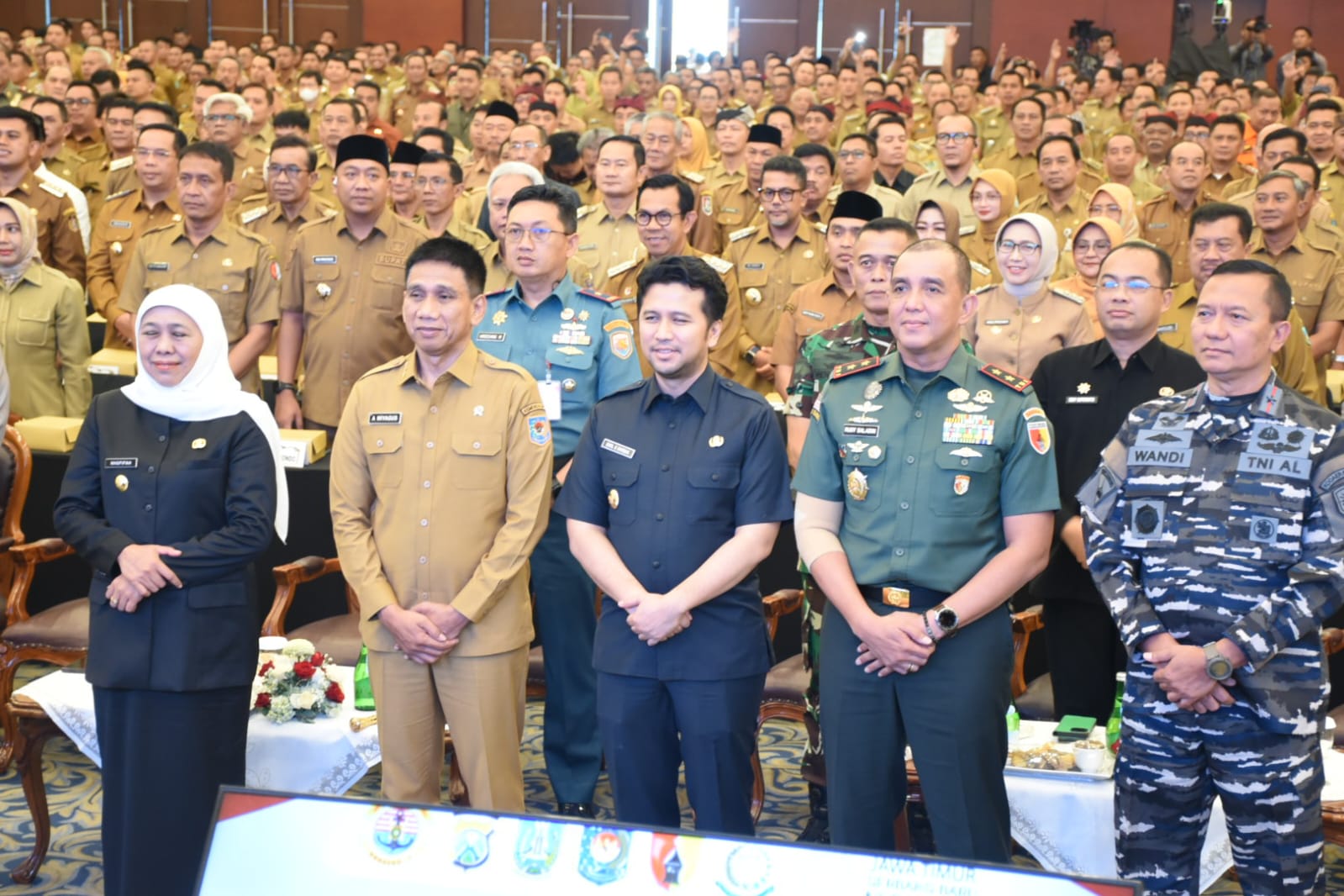 PI – Surabaya, Komandan Komando Daerah TNI AL (Dankodaeral) V Laksda TNI Ali Triswanto, S.E., M.Si., diwakili Wadan Kodaeral V Brigjen TNI (Mar) Suwandi S.A.P., M.M., mengikuti Rapat Koordinasi Forkopimda Provinsi Kabupaten /Kota dan Forkopimcam Se-Jawa Timur, di Grand City Convention dan Exhibition Surabaya Lantai 3 Jl. Walikota Mustajab Kel. Ketabang, Kec. Genteng Kota Surabaya. Selasa (04/11/2025)