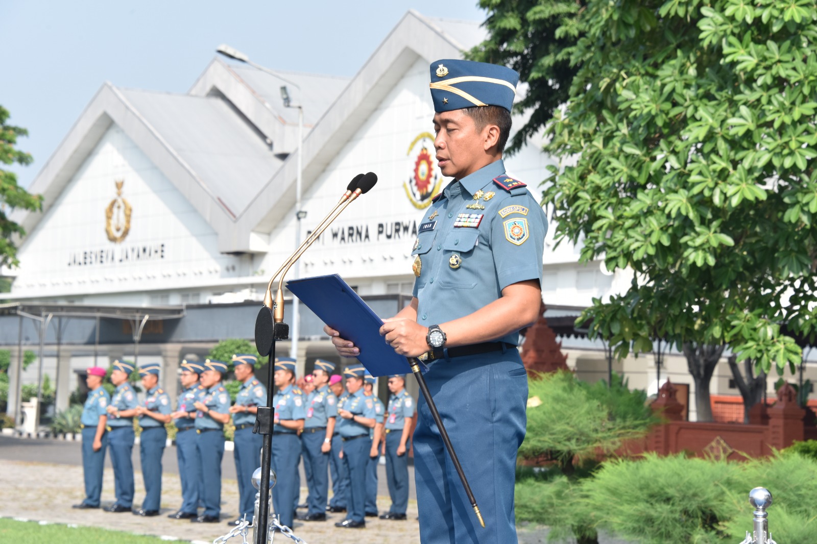 PI – Surabaya, 19 Januan, 2024, Seluruh personel militer dan PNS Kodiklatal, selesai melaksanakan Upacara Bendera yang dipimpin Komandan Kodikopsla (Dankodikopsla) Kodiklatal Laksma TNI Muhammad Iwan Kusumah, menerima pengarahan dari Wakil Komandan (Wadan) Kodiklatal Laksda TNI Eko Wahjono, bertempat di Indoor Sport Kodiklatal, Bumimoro Surabaya. Senin (19/02/2024).