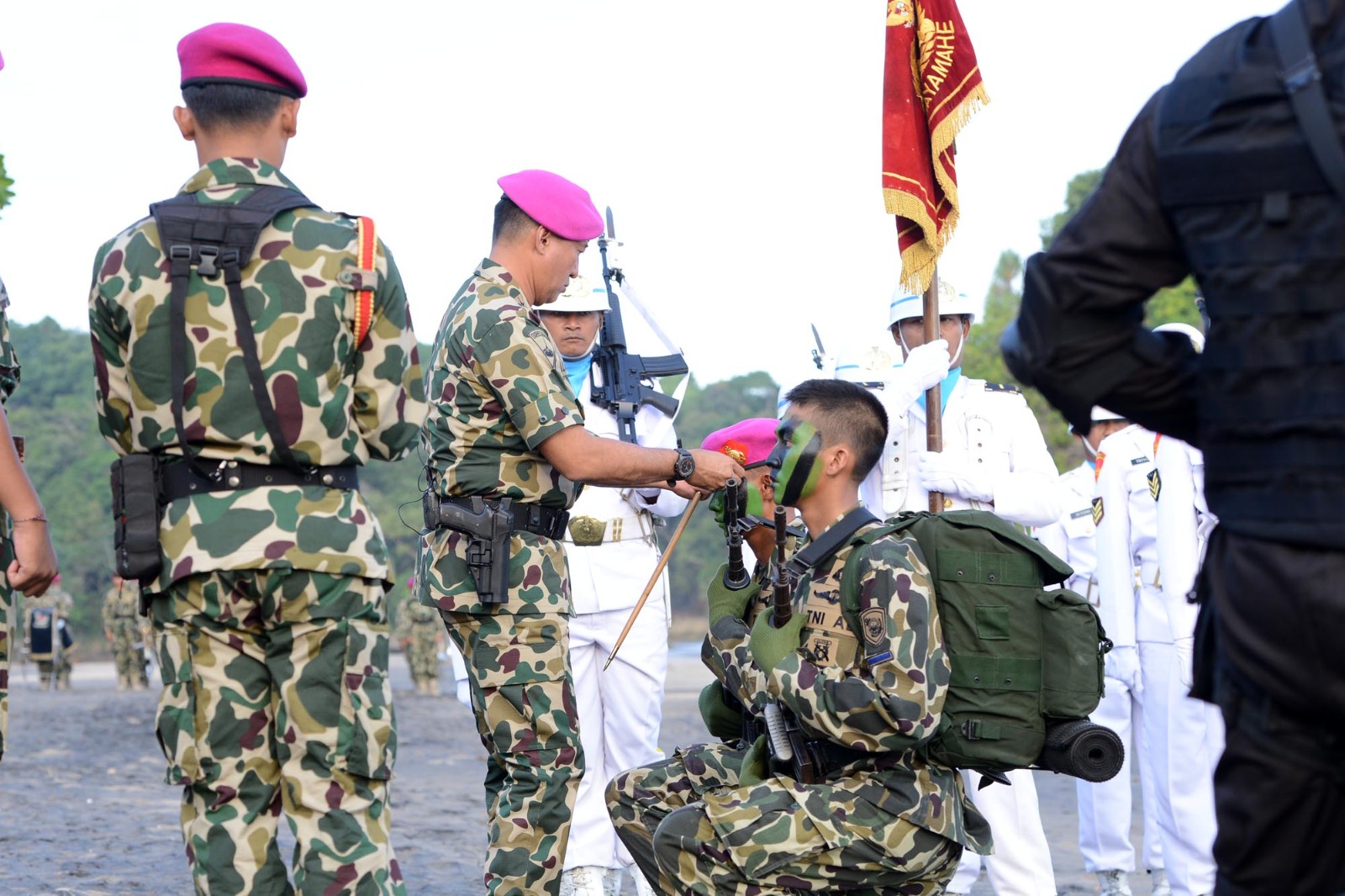 PI – Sorong, Jumat (26/05/2023). Wakil Komandan (Wadan) Pasmar 3 Kolonel Mar Nanang Saefulloh, S.E., M.M., mewakili Komandan Pasmar 3 Brigjen TNI (Mar) Sugianto, S.Sos., menghadiri upacara pembaretan prajurit muda Korps Marinir di pantai Baruna Kondang Iwak, Desa Tulungrejo, Dusun Donomulyo, Malang Selatan.