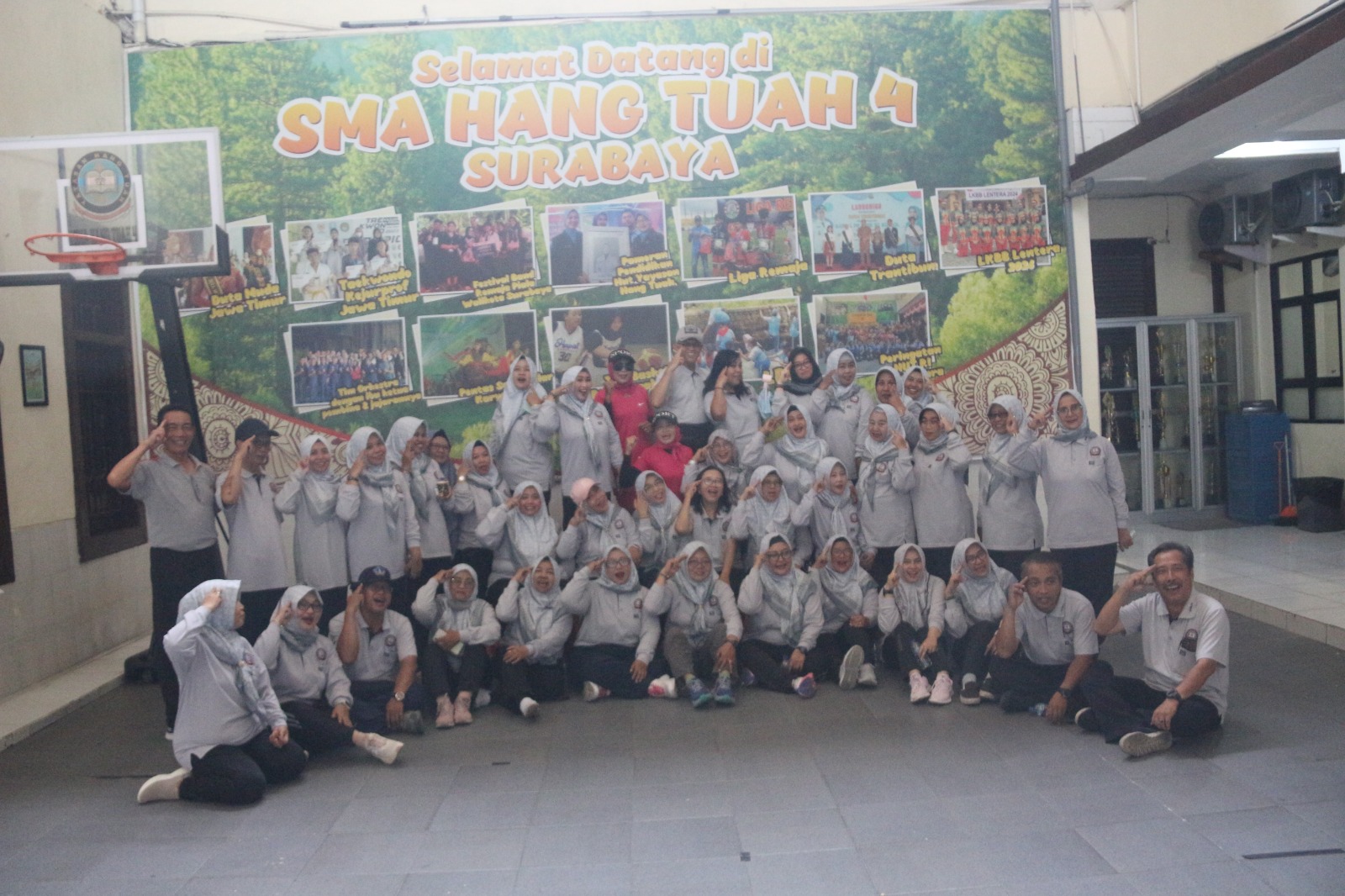 Para Kasatdik bersama seluruh Pengurus Cabang Surabaya Yayasan Hang Tuah, Ketua Pengurus Cabang Surabaya Yayasan Hang Tuah Kolonel Laut (Purn) R. Joko Heriyanto, S.E., M.M., CHRMP, Sekertaris Niken Dyah Puspitorini , S.Pd, Bendahara Ninik Indra Sunaring Venyanti, Kabid Diklat Dra. Ramayanti, Kabid Bang Kolonel Laut (Purn) Dr. Abdul Rahman, S.T., M.T melaksanakan olahraga pagi di SMA Hang Tuah 4 Jalan Bogowonto No.18 Surabaya yang di pimpin oleh Ibu Ismi dari Komunitas Senam Dahlan Iskan Surabaya.